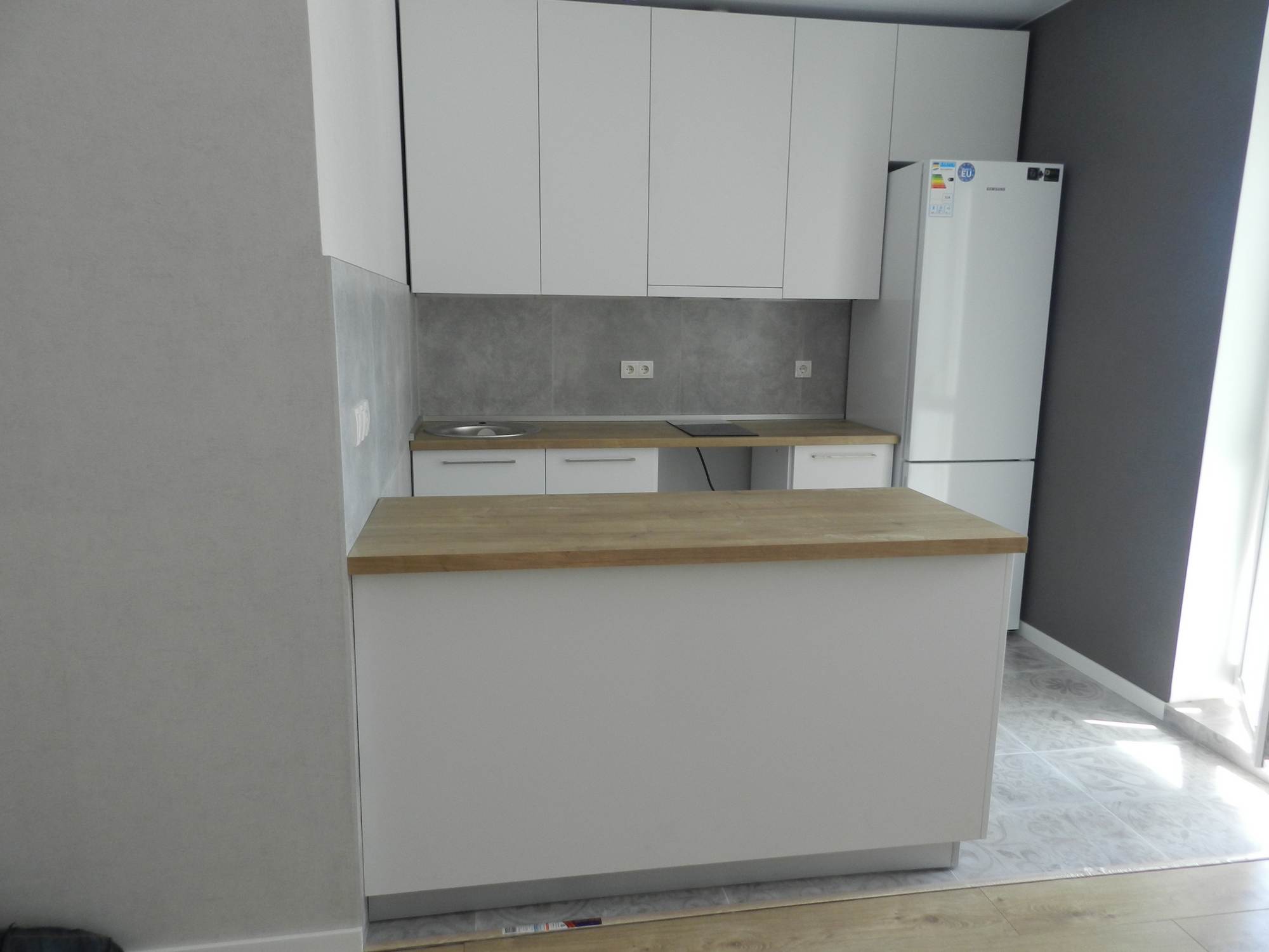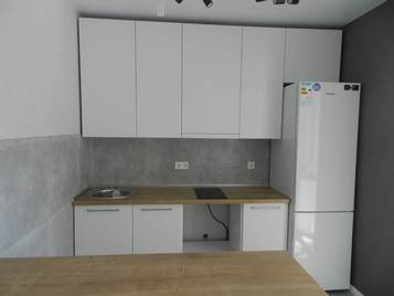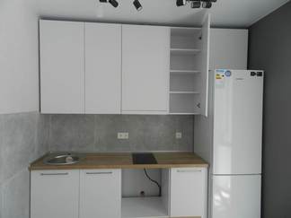 Современный кухонный гарнитур «Кристина» представляет собой скандинавский минимализм, прост и лаконичен. Идеально подойдёт для небольшой квартиры студии или обновит маленькую кухоньку малогабаритной хрущевки. Отдельно стоящий стол тумба как полостров отделит зону кухни от гостиной или столовой.