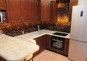 Исходя из размеров, подобрали прекрасный вариант кухни из лдсп, верх светлый, а низ темного цвета, лдсп «под дерево». Предложили очень практичный вариант, с обилием шкафчиков и ящиков для посуды, приправ, бутылок и СВЧ-печки. Ручки очень симпатичные. Сотрудничать с этой компанией – сплошное удовольствие. Кухня доставлена в срок — через месяц и никаких тебе задержек. Оплата за мебель была произведена после ее детального изучения. Мебель была аккуратно запакована в коробки, инструкция прилагалась. Мебельные принадлежности пришла без брака и в полном комплекте. Собрать смогли ее самостоятельно, внешне смотрится очень дорого, хоть и заплатила за такое качество немного.