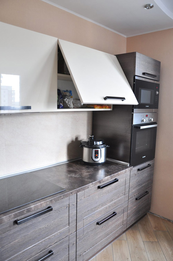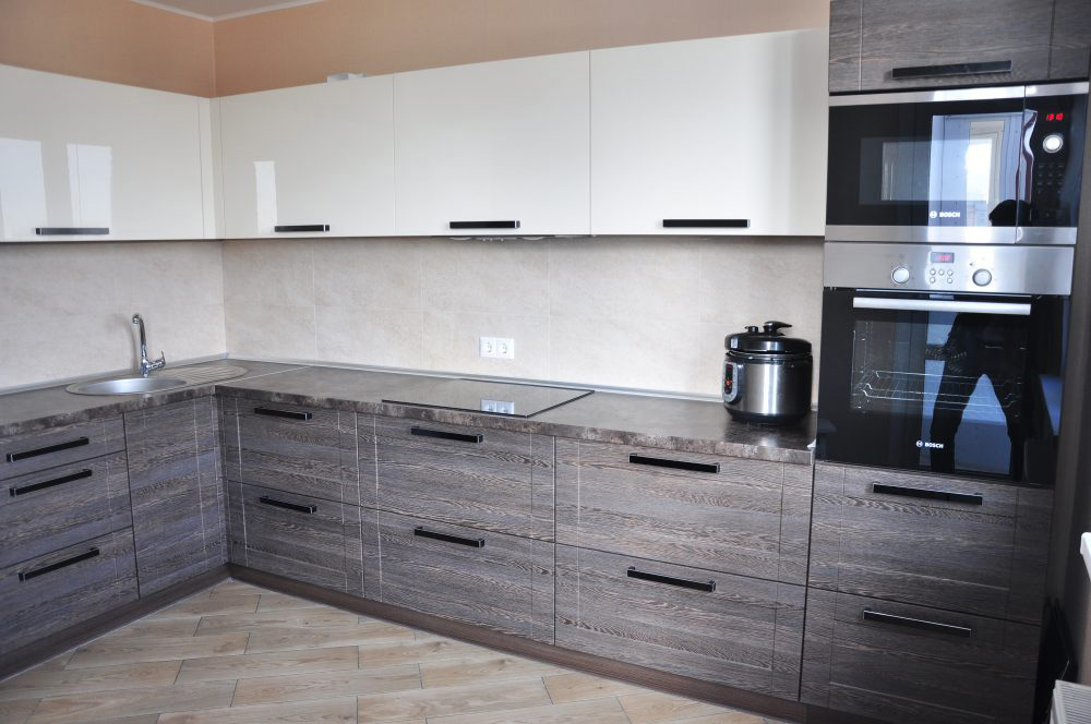 Кухня «Илиада» — идеальное решение для ценителей функциональности, практичности, минимализма. Мебель выполнена в спокойных пастельных тонах. Сочетает строгие линии с элементами строгой классики. Глянцевая поверхность подвесных шкафов добавляет изысканности, легкости помещению, кухня не выглядит перегруженной, нагроможденной. Хорошая вместимость, эргономичность позволяют комфортно эксплуатировать «Илиаду» в больших семьях. Лаконичный дизайн помогает создать уют, благоприятную кухонную атмосферу. Конструкция поместит всю кухонную утварь, а также мелкую бытовую технику.
