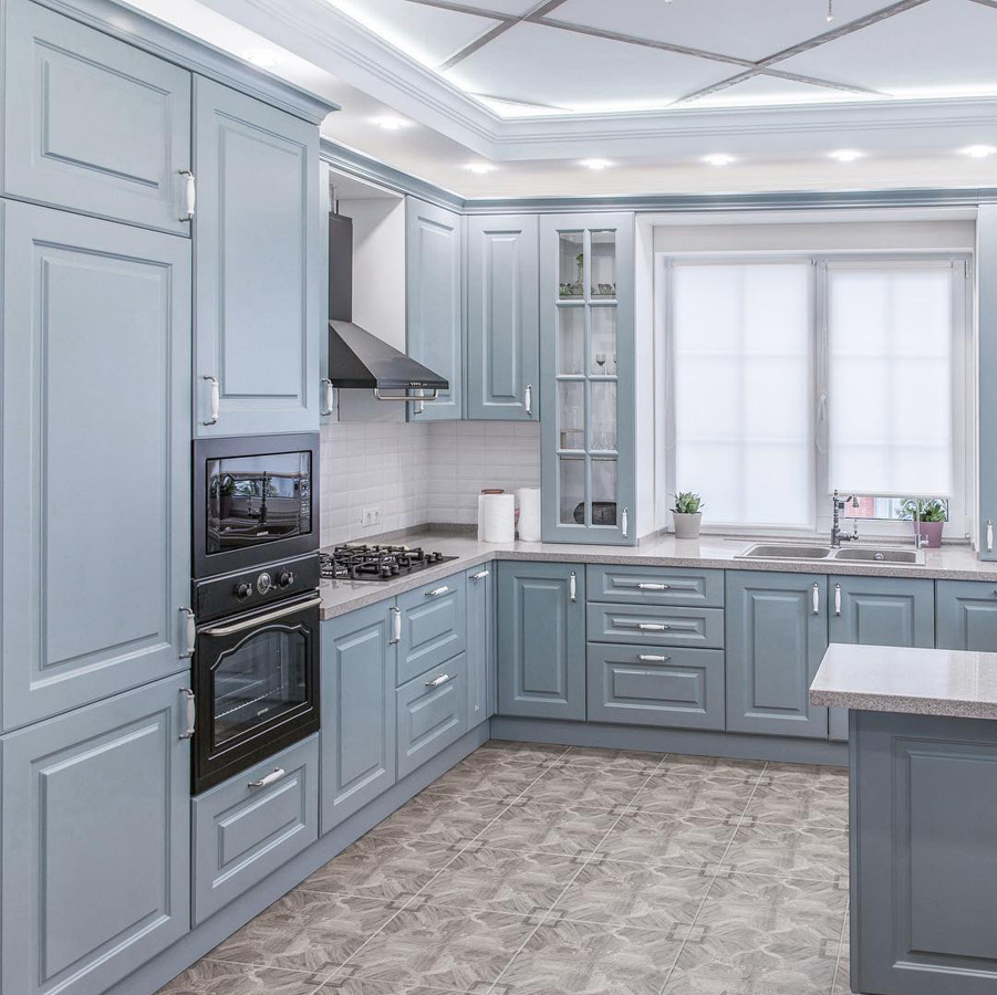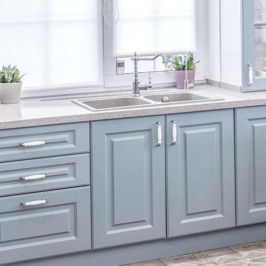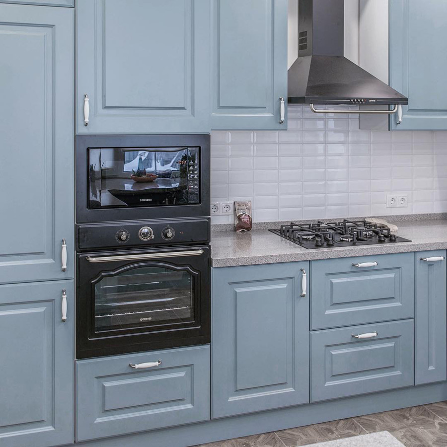 Элегантная кухня Альба, выдержанная в приятной голубой глянцевой расцветке, гармонично вписывается в интерьер частного дома или небольшой квартиры. Изготовленные из ЛДСП и невского ламината, корпуса кухни отличаются долговечностью и устойчивостью к повреждениям. Керамическая рабочая поверхность отличается эстетичным дизайном и стойкостью к износу. Кухня имеет лаконичный декор — блестящие серебристые ручки из керамики. В комплекте идут сервант, подвесные и напольные шкафы, вытяжка, а также ниша для духовки и микроволновки. Заказать кухню Альба можно в полной или частичной комплектации с доставкой по всей России.