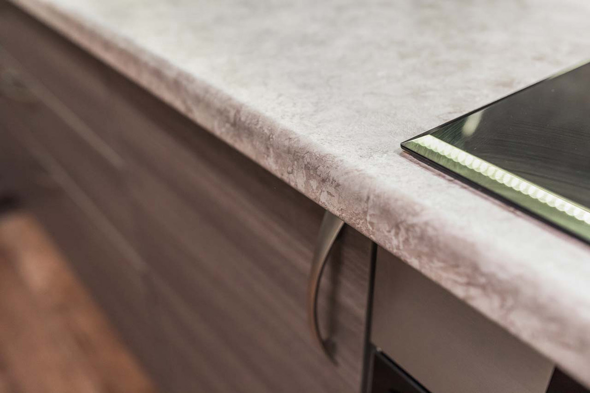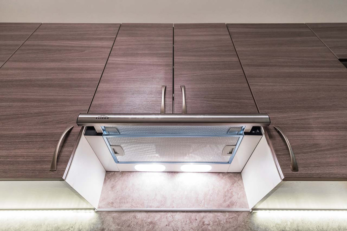 Гладкие металлические ручки обеспечивают эргономичное открытие и закрытие полок и ниш. Влагонепроницаемая столешница увеличивает гигиенические свойства. Бланка подходит для установки в небольших квартирах и просторных загородных домах. Согласно пожеланиям заказчика можно изменить расцветку, материалы и размеры.
