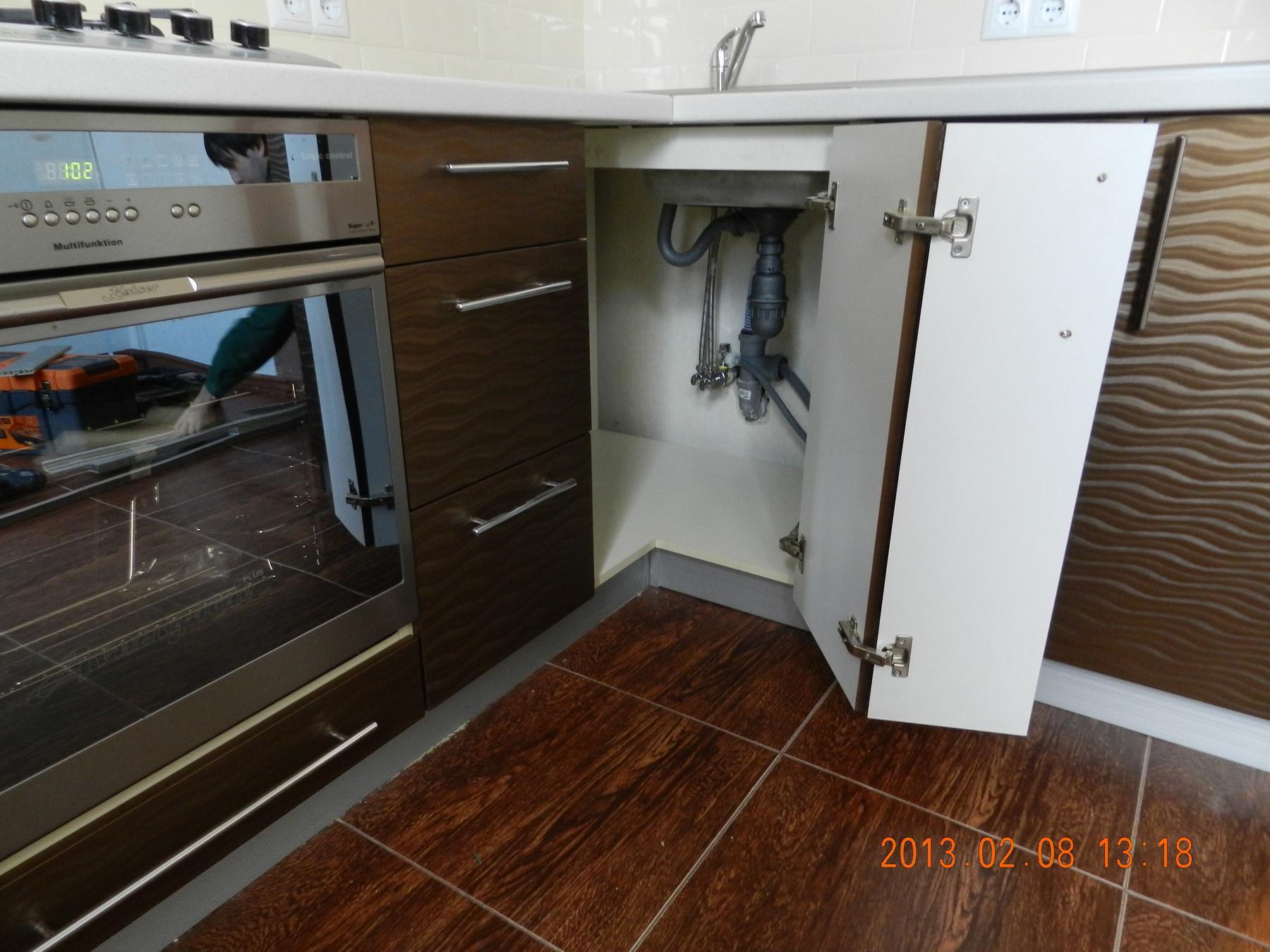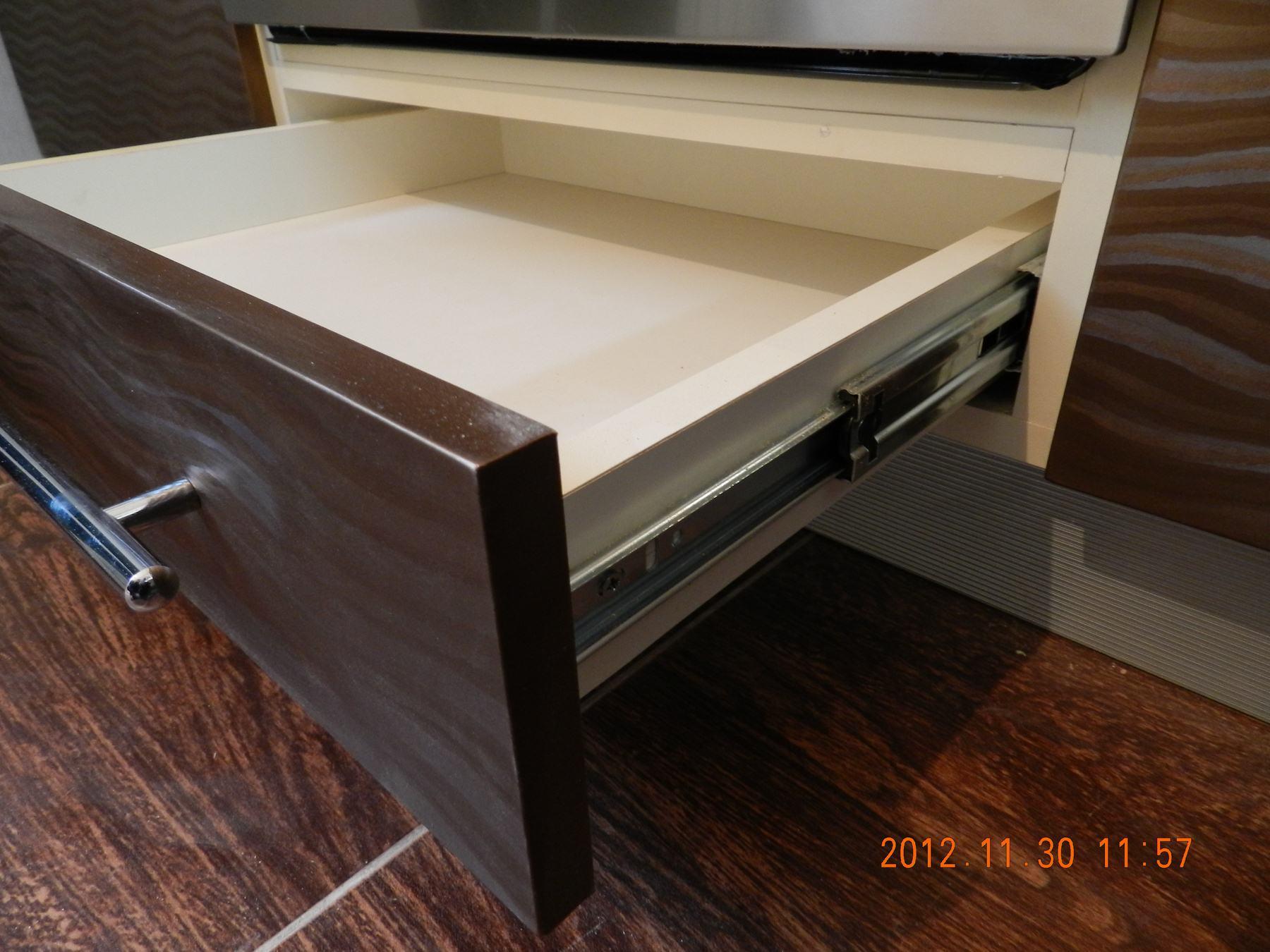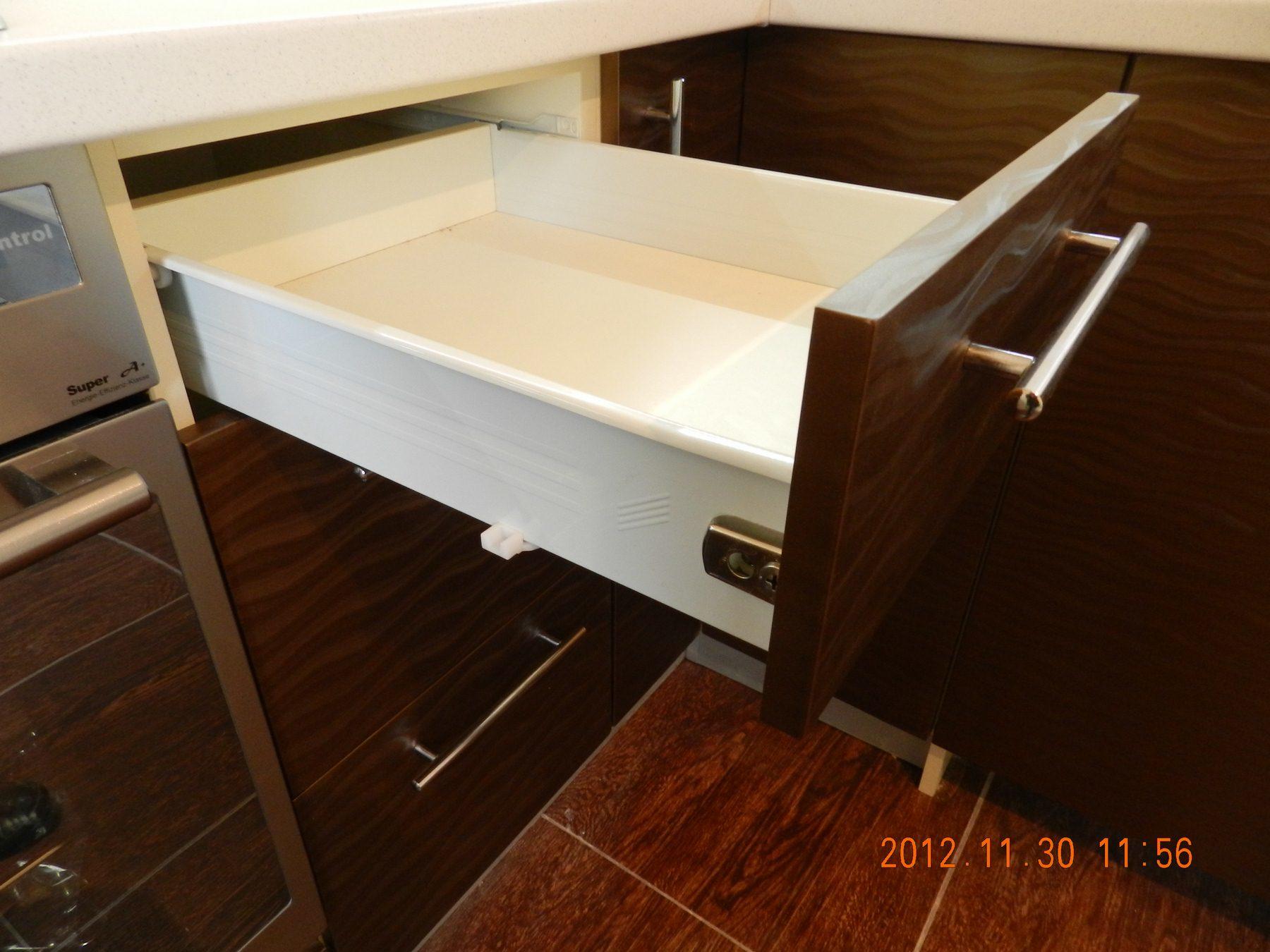 Модульная конструкция гарнитура делает его максимально эргономичным, и позволяет задействовать для хранения всей кухонной утвари. Несмотря на небольшую стоимость, выглядит стильно и дорого.