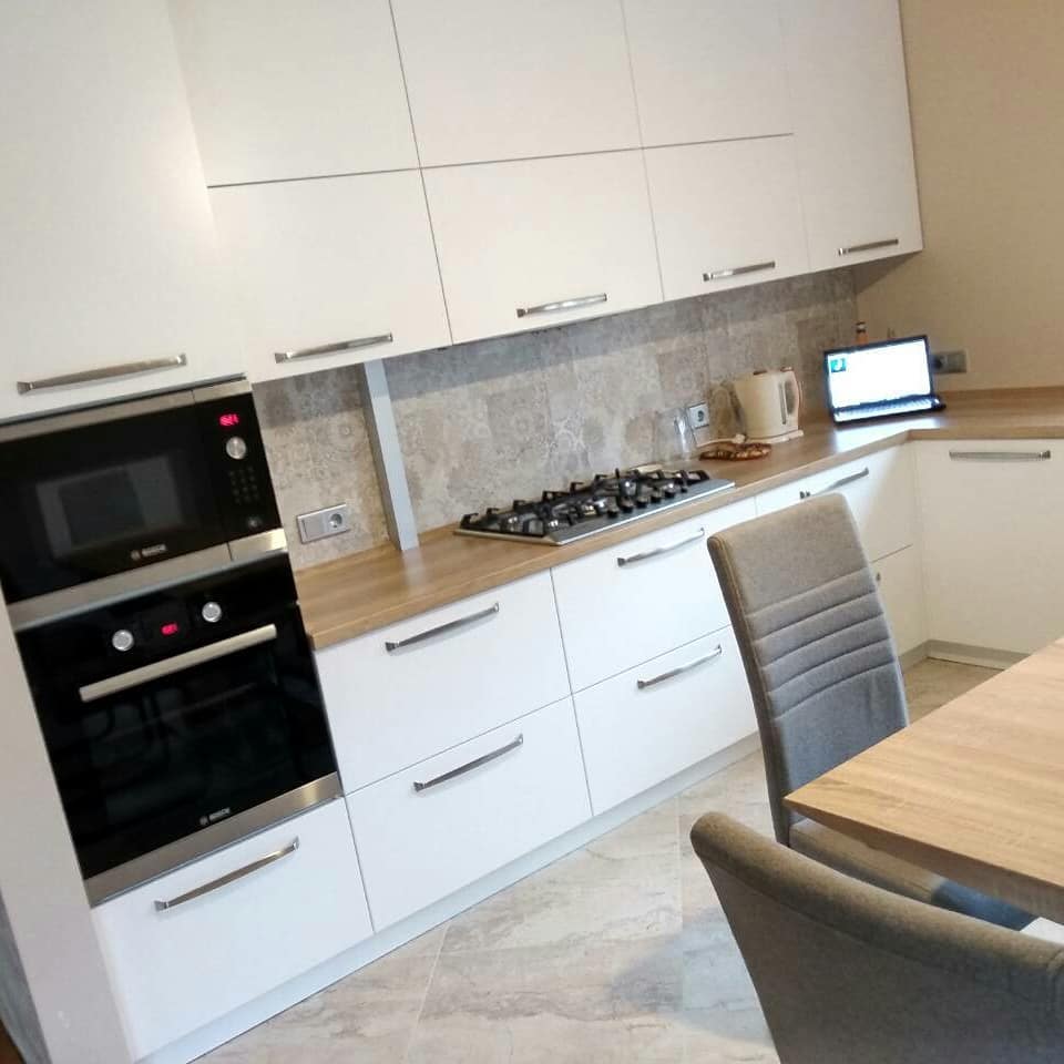 Элегантная кухня «Вива», выполненная из ДСП, подходит для дома или квартиры в европейском стиле. Кухня выполнена в приятных белых тонах, столешница бежевого цвета из ЛДСП и просторная рабочая поверхность отличаются устойчивостью к повреждениям и износу. Кухня укомплектована навесными и напольными шкафчиками с хромированными ручками, а также двумя нишами для духовки и микроволновки. Такая кухня подойдёт для тех, кто ценит лаконичность, спокойные цвета и не любит лишних деталей в интерьере. Купить кухню «Вива» можно в полной или частичной комплектации, доставка производится по всей России.