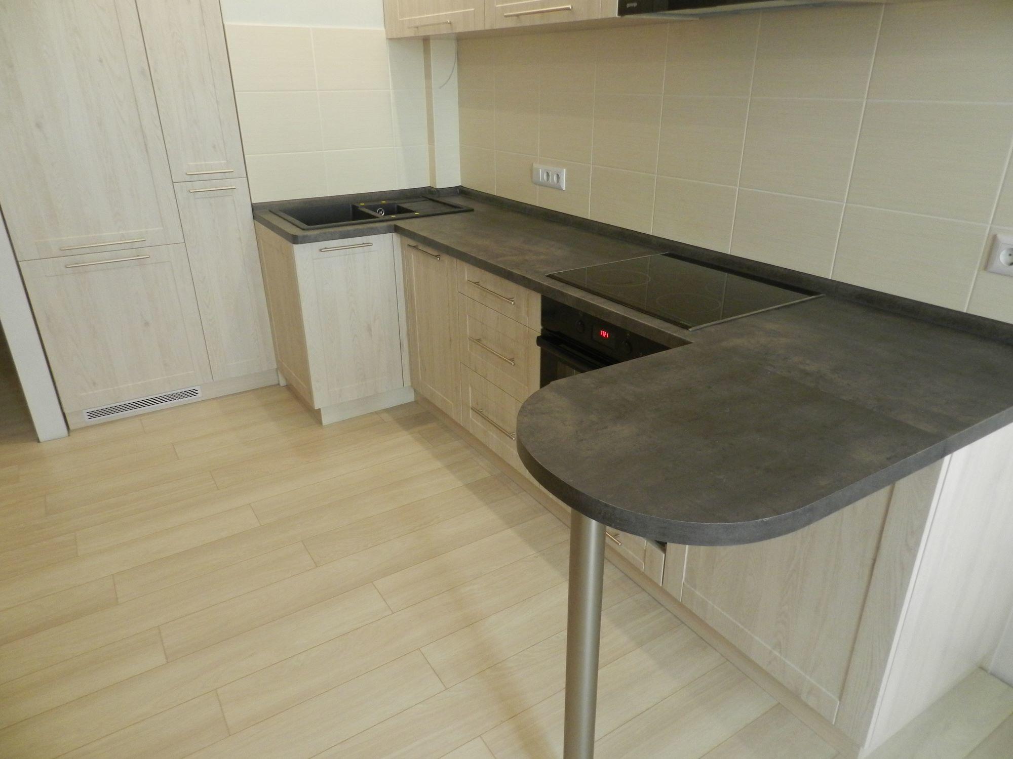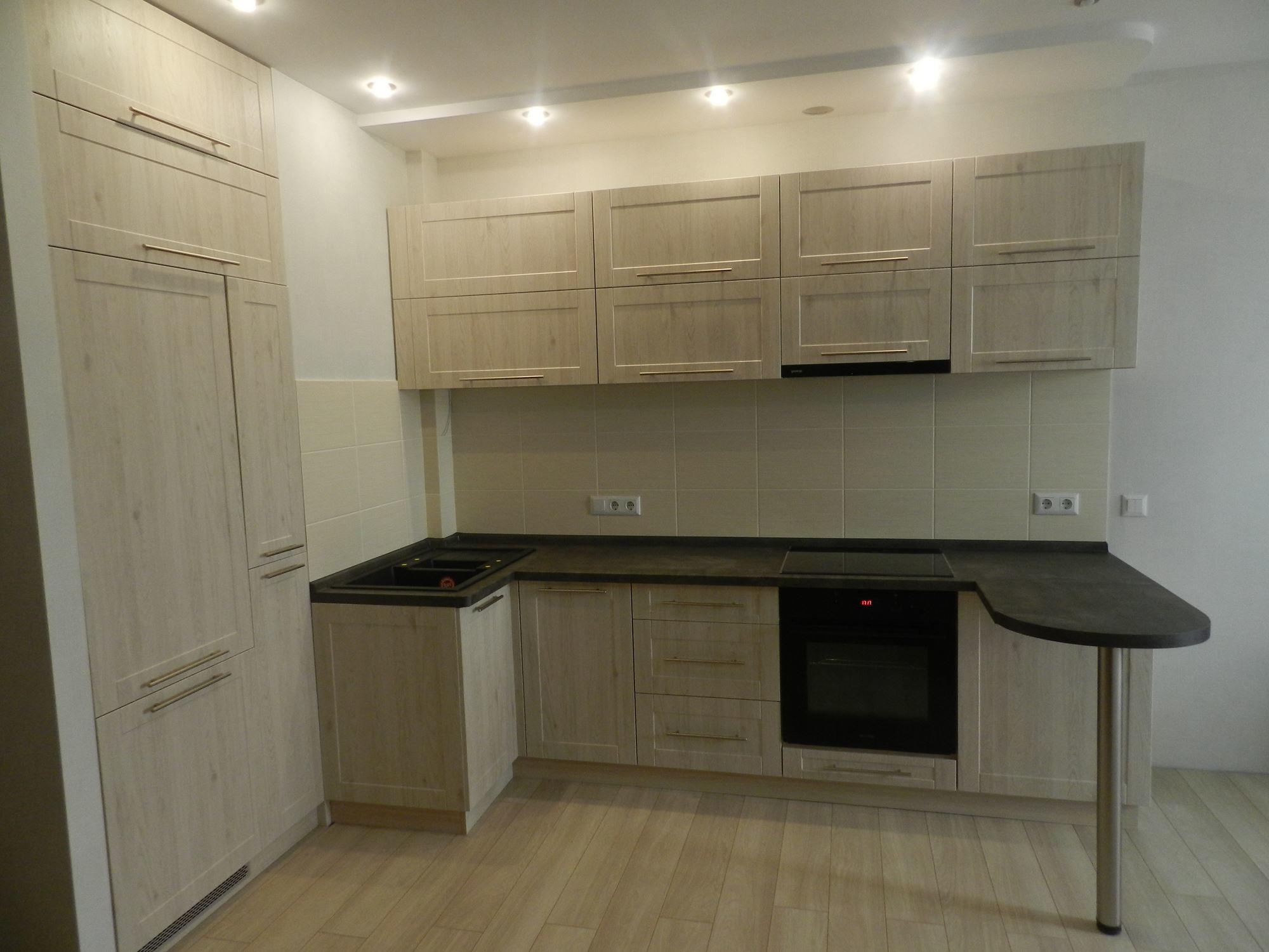 Элегантная угловая кухня «Лорен» без лишних деталей, выдержанная в стиле модерн, изготовлена из ДСП приятного цвета кофе с молоком. Кухня оснащена верхними навесными и нижними напольными, а также встроенными шкафами. Благодаря такой конструкции кухня занимает минимум места и помогает рационально распределить пространство, все продукты и кухонную утварь. Чёрная столешница из ДСП с закруглёнными углами отличается повышенной прочностью и устойчивостью к износу. Купить кухню «Лорен» можно в полной или частичной комплектации, доставка и установка производится по всей России.