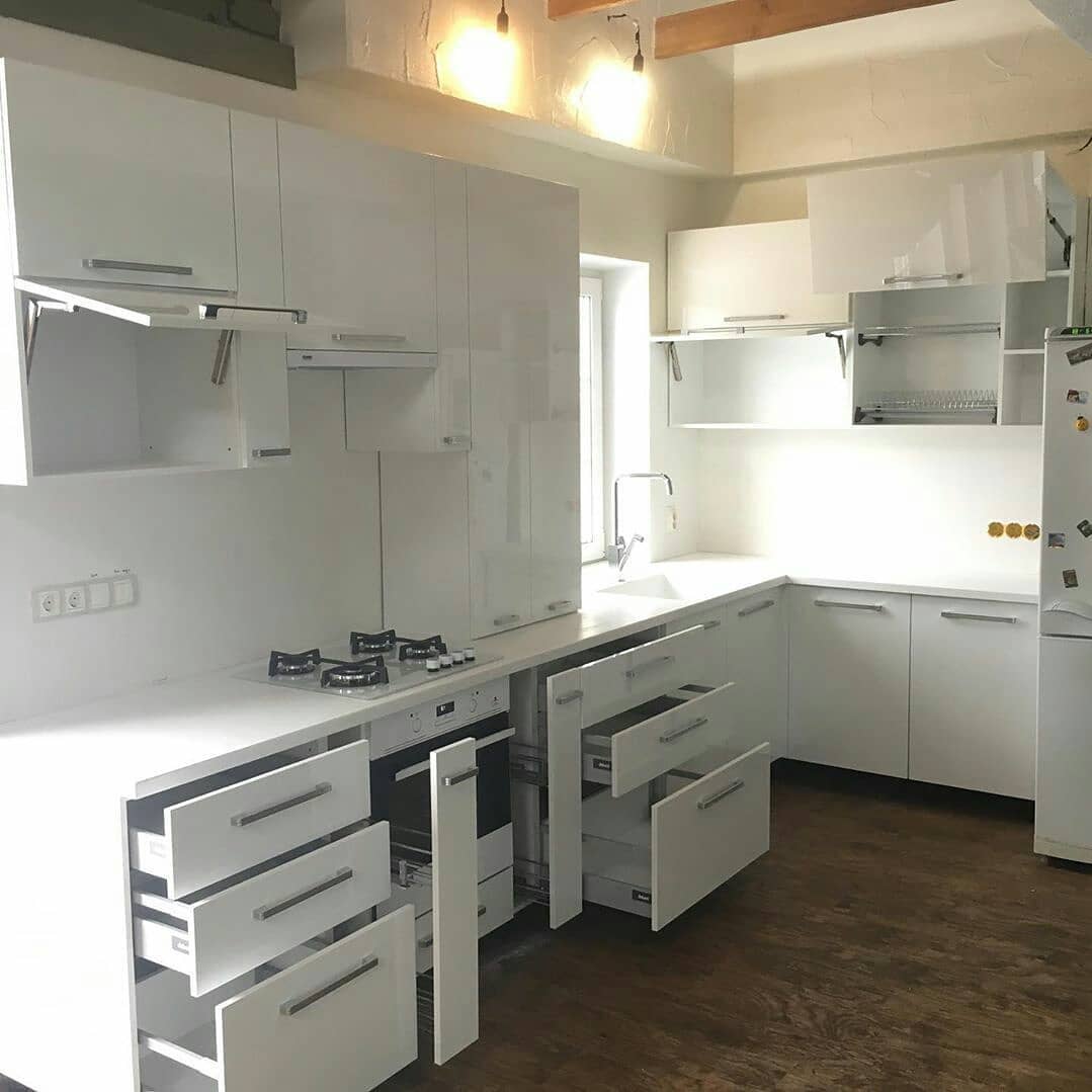 Угловая кухня «Ильма», выполненная в в скандинавском стиле — очередной пример оригинального дизайна, пользующийся огромной популярностью у наших заказчиков. Небольшой размер гарнитура и продуманная до мелочей функциональность позволяет разместить его даже в небольших помещениях. За глянцевым белым фасадом скрывается вся кухонная техника, трубы и провода, а столешница из кварцевого агломерата прослужит не один десяток лет. Грамотная планировка данного варианта позволяет максимально задействовать рабочее пространство комнаты. При изготовлении используется высококачественная фурнитура.