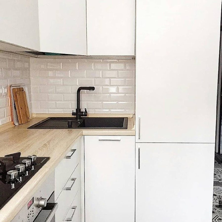 Как и все кухонные гарнитуры современного скандинавского стиля, кухня «Краса» выполнена в светлых пастельных тонах, фасад белый столешница бежевая. Замечательно впишется в любой интерьер квартиры.