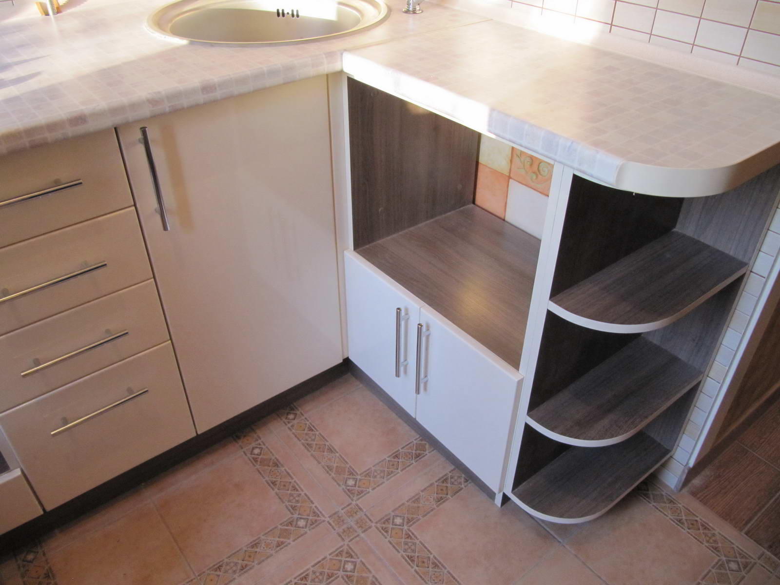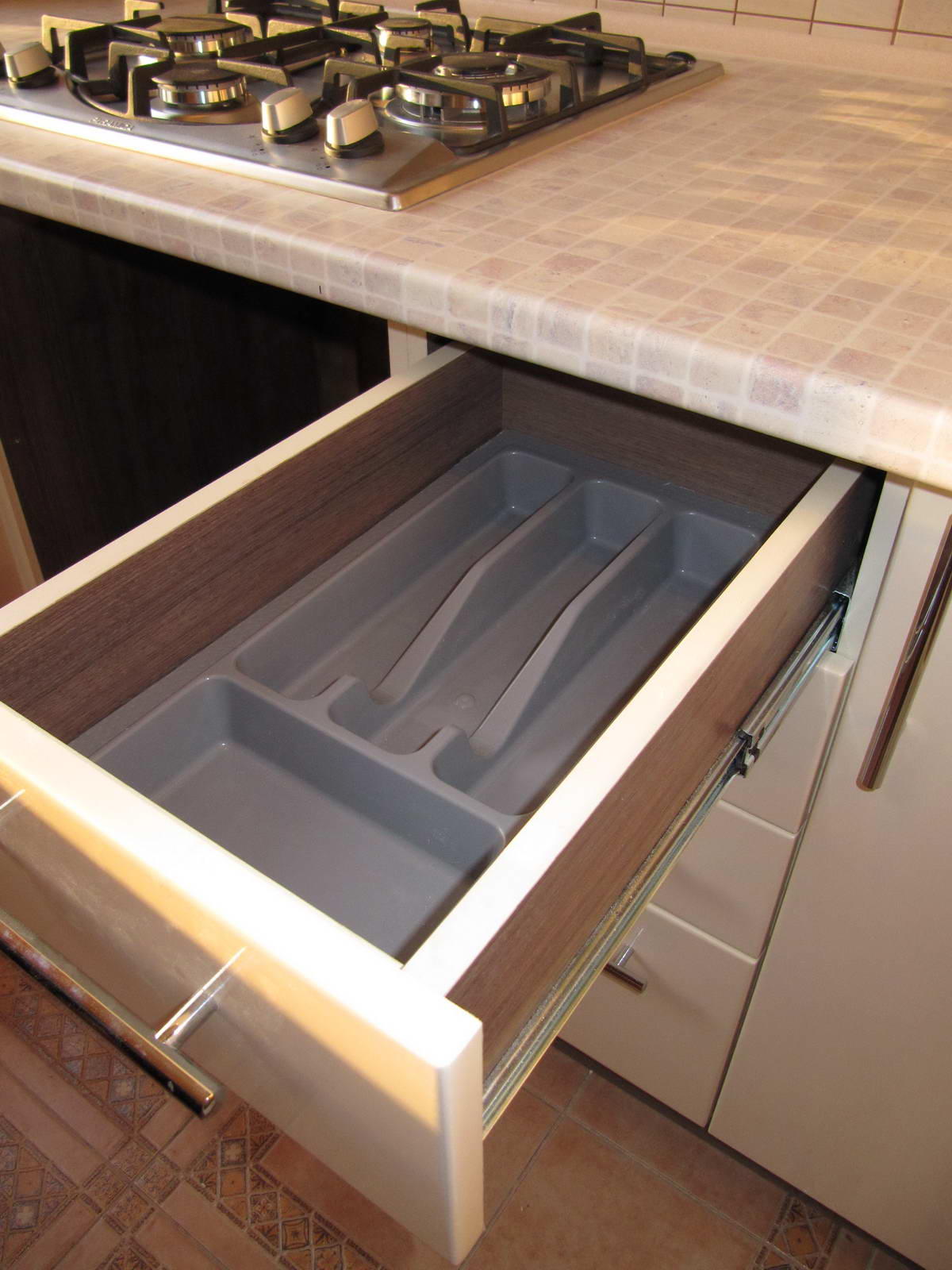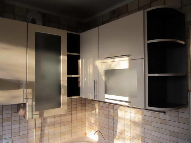Угловой кухонный гарнитур, выполненный в светлых тонах, удачно впишется в интерьер небольшого помещения. Эргономичная планировка с компактной мойкой в угловой части гарнитура позволяет оптимально использовать пространство и экономит место.