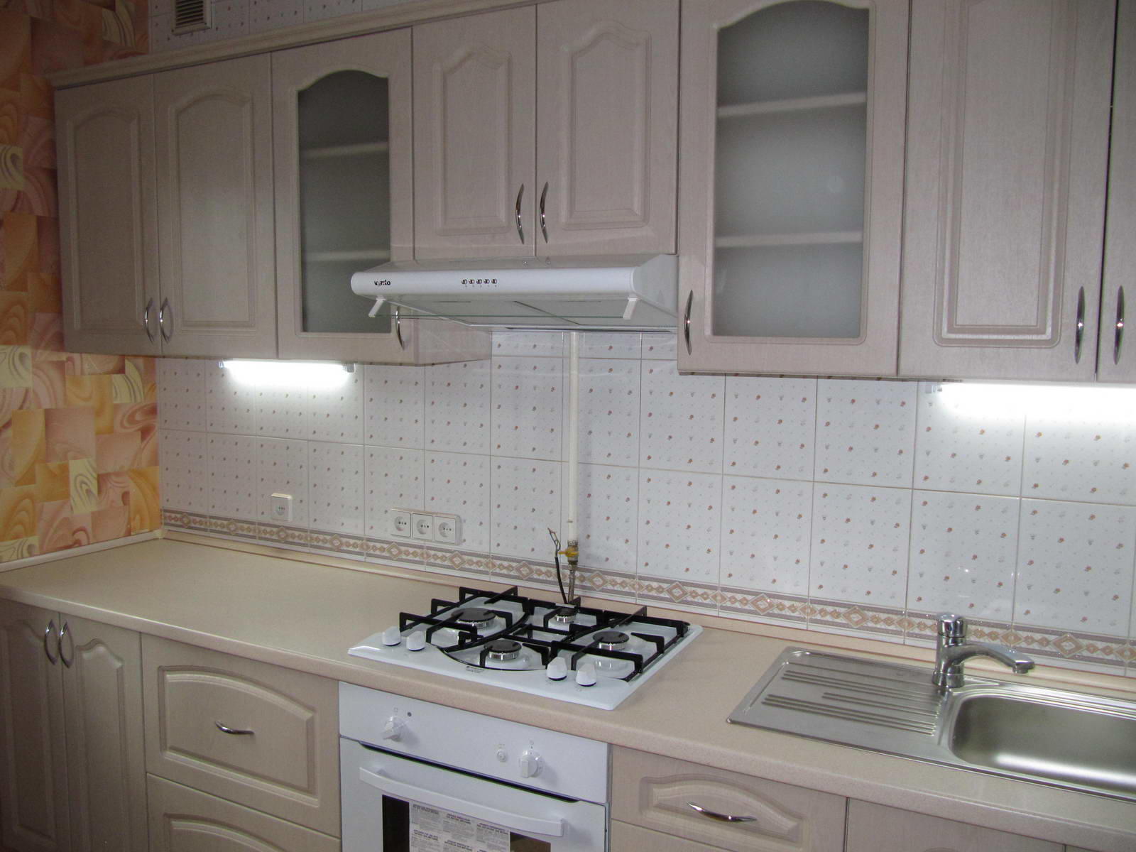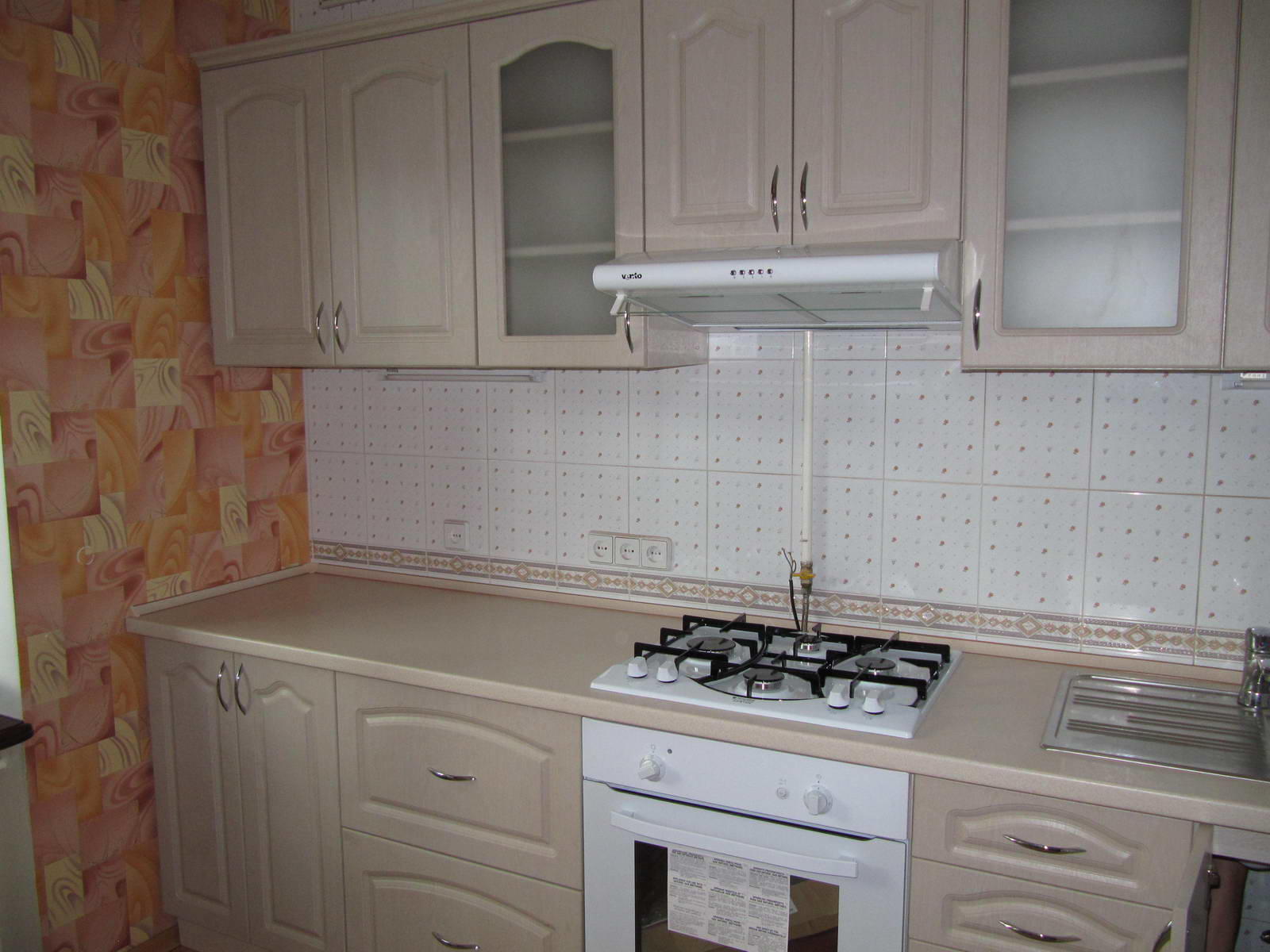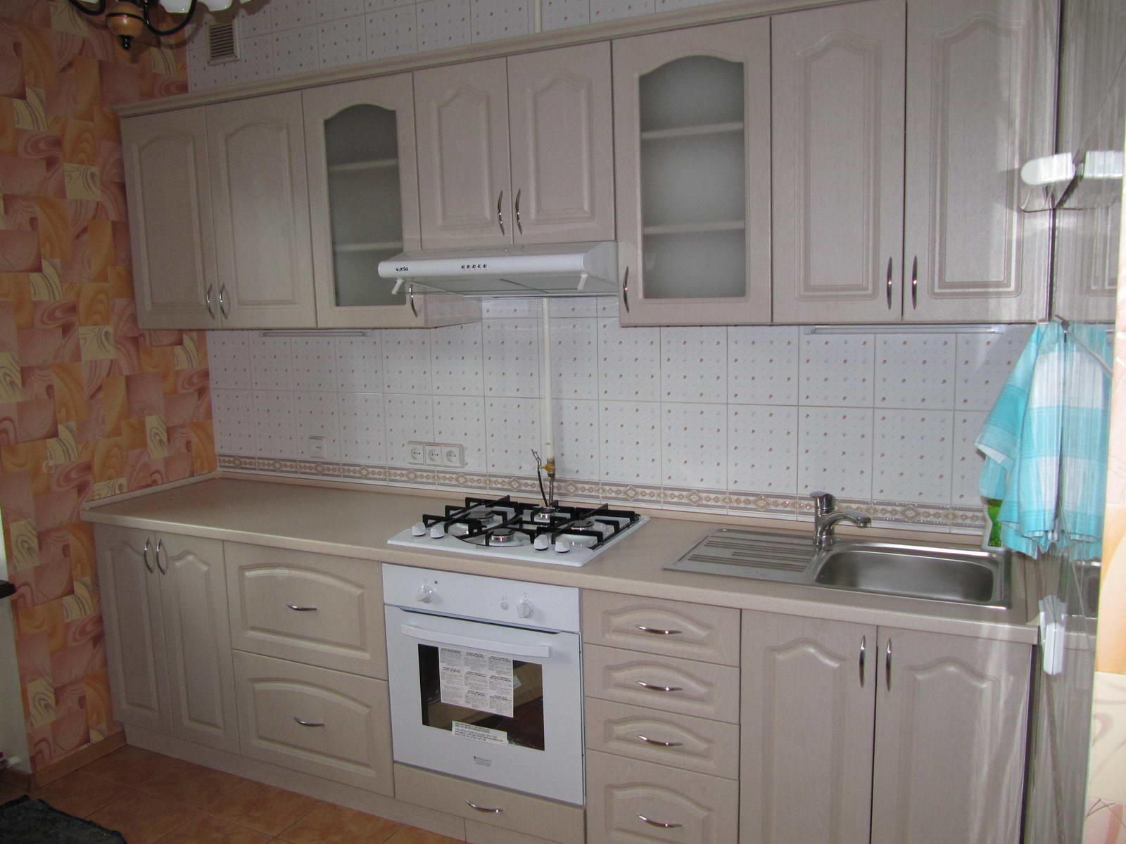 Кухонный гарнитур Лора спроектирован в классическом стиле с открывающимися вбок дверцами. Шкафчики, расположенные около вытяжки, имеют стеклянные вставки. Благодаря простому дизайну без лишних изысков такая кухня гармонично дополнит любое светлое кухонное помещение небольших размеров. В шкафчиках есть держатели для тарелок и кружек. Также имеются шкафы под бытовую технику. Фасады ДСП бежевого цвета, материал корпусов ДСП. Ручки обыкновенные, металлические, без вставок. Столешница ДСП бежевого цвета. Вы можете заказать кухню ДСП Лора любых размеров, цветов и комплектации.