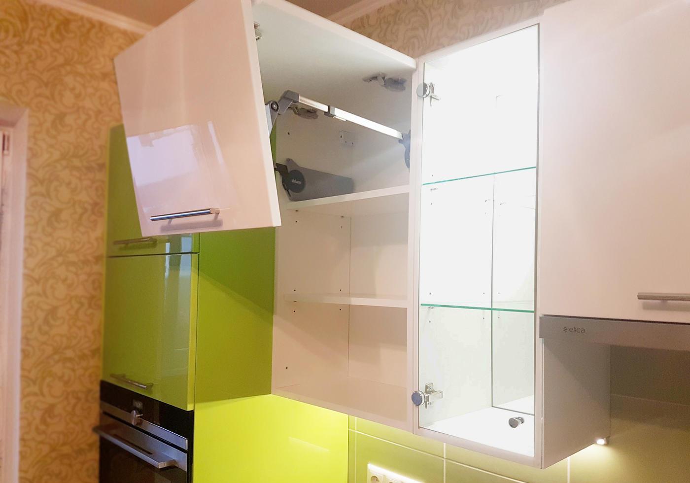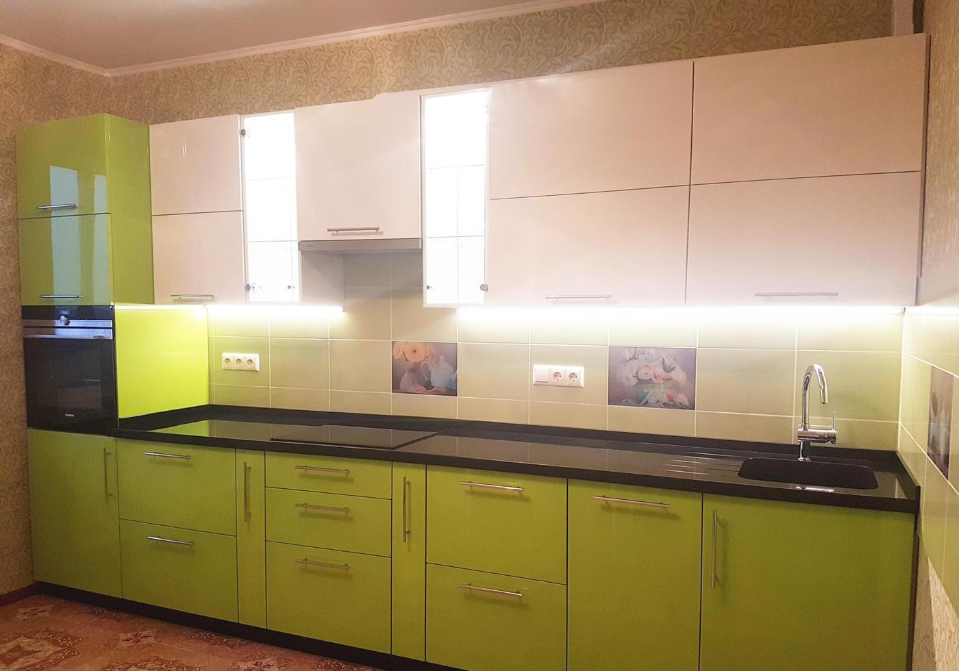 Все это делает мебель легкой в уходе и долговечной. Особенность гарнитура — нежная подсветка рабочей поверхности, встроенная над плитой. Комплект подойдет как для дома, так м для квартиры. Цвета, материалы, и размеры можно изменить по желанию заказчика.