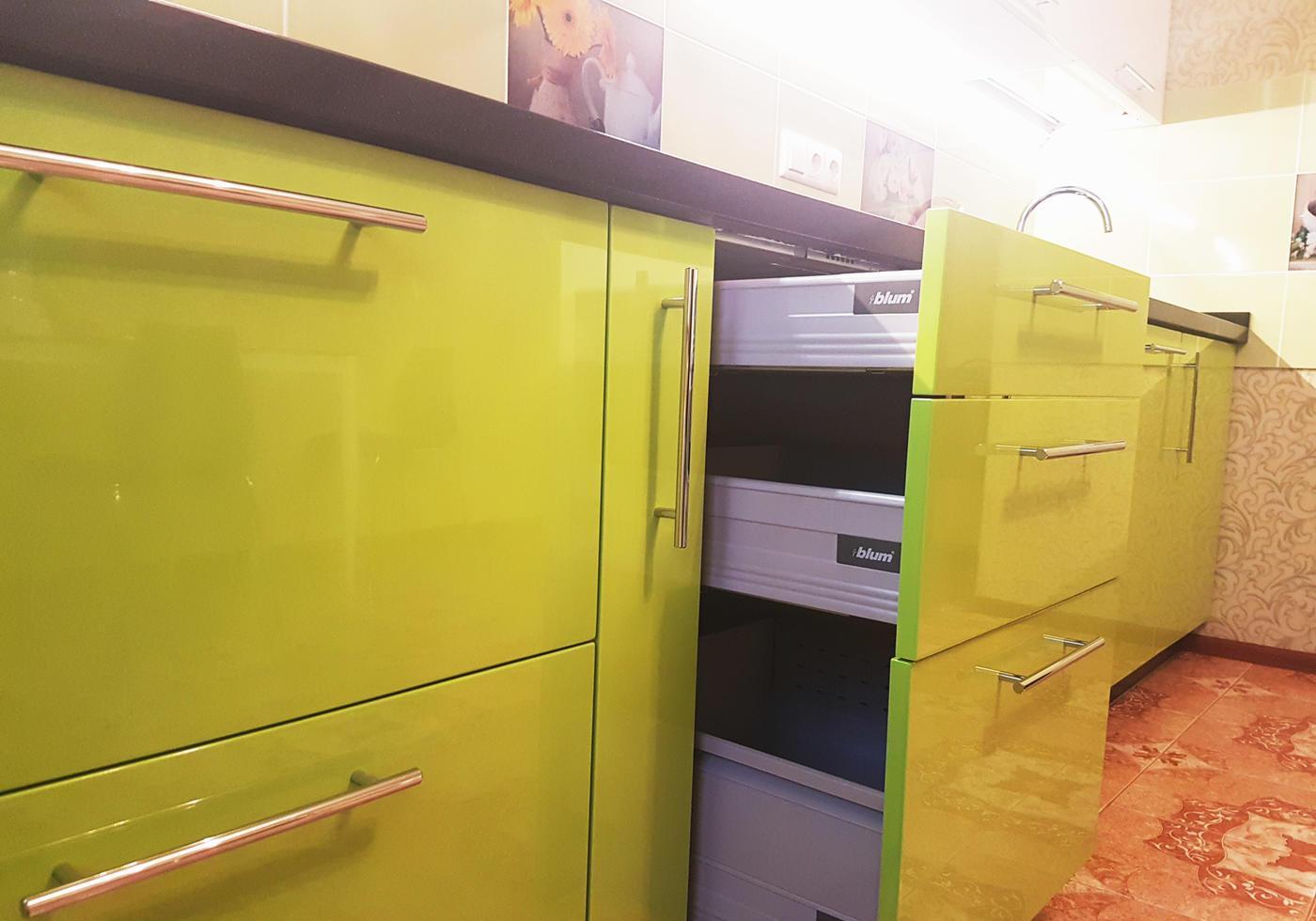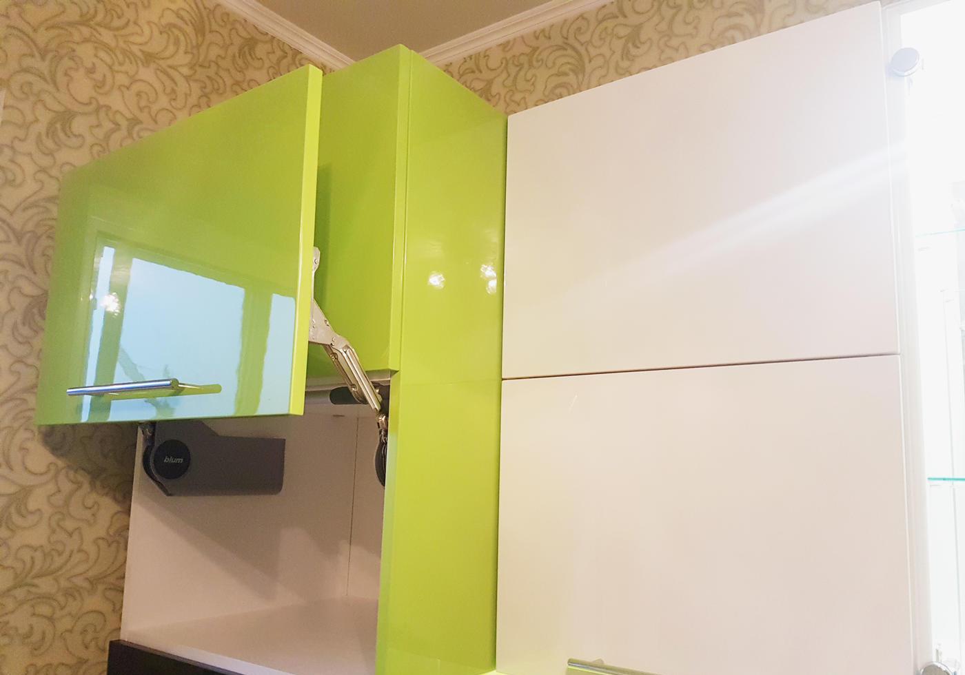 Комплект Робуста — это прямая кухня в стиле хай-тек. Классические цвета в ней создают ультрасовременное сочетание с нежным салатовым. Белый верх, который визуально расширяет пространство, отделен от салатового низа тонкой черной линией глянцевой столешницы. Корпуса выполнены из ЛДСП, покрытие фасада и рабочей поверхности влагостойкие.