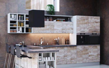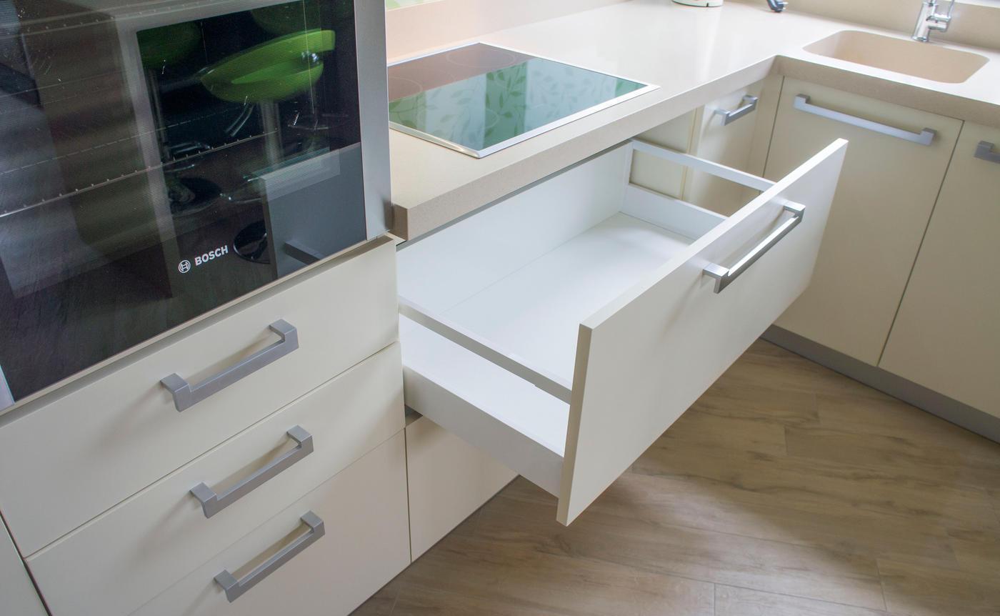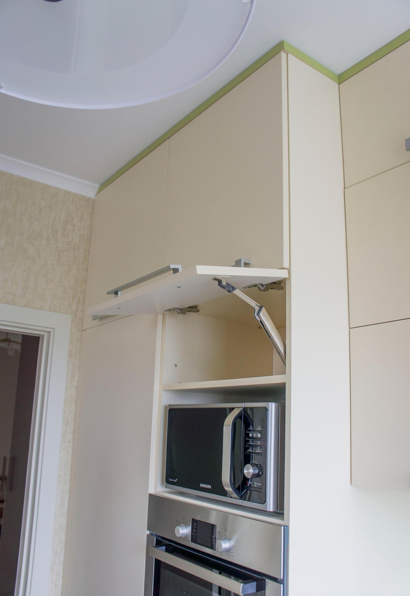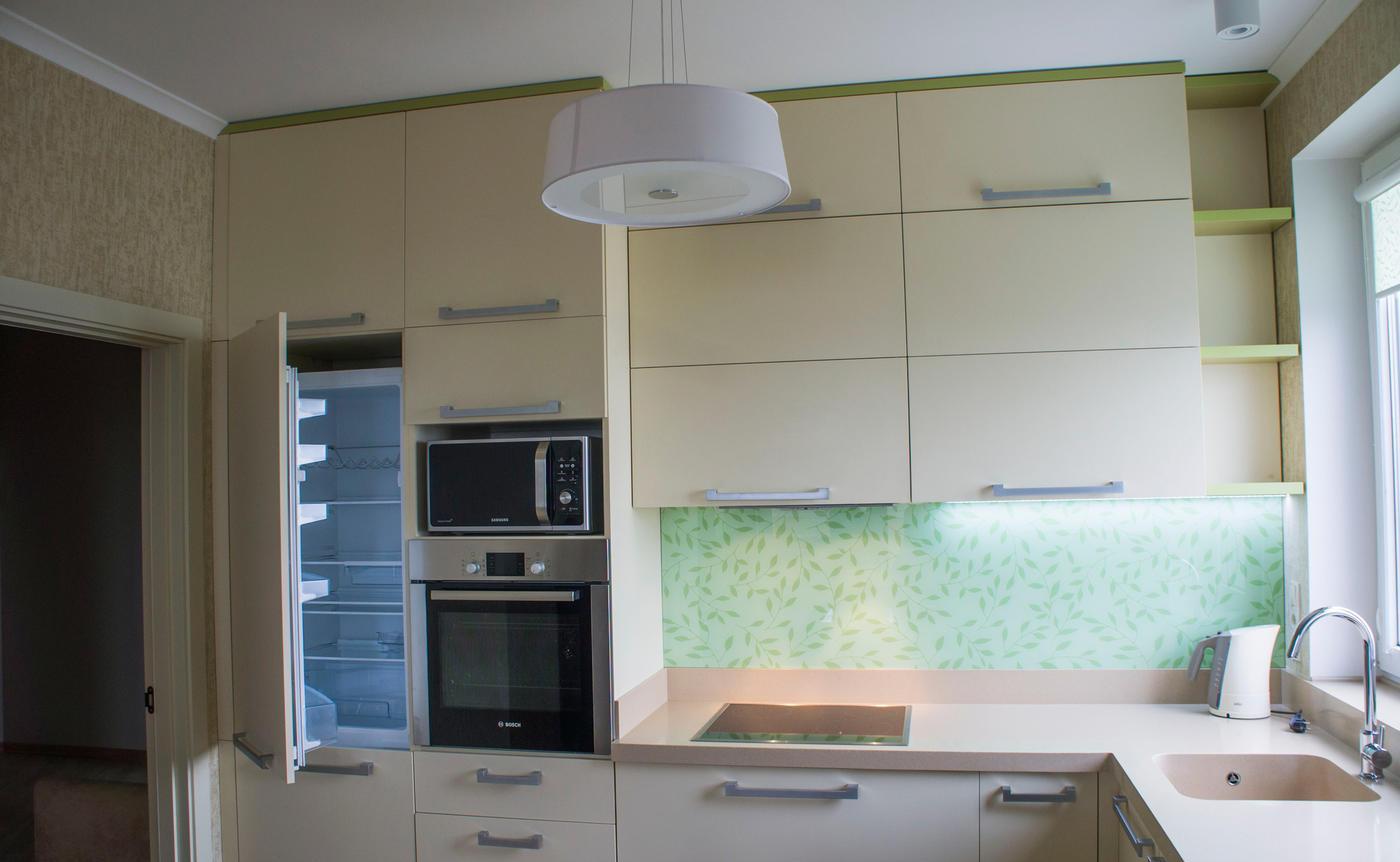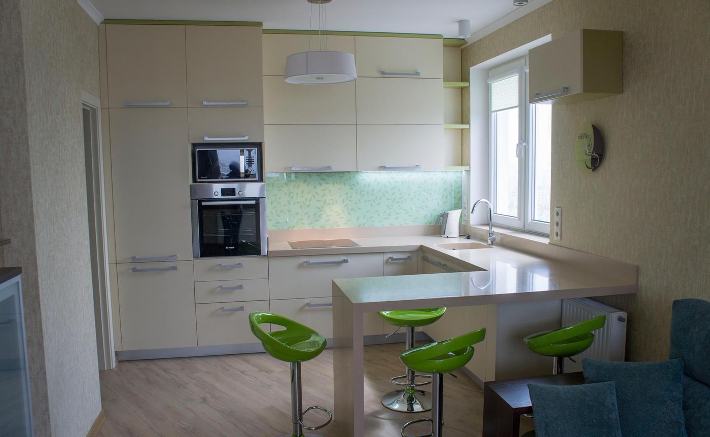 Кухня «Ньюлайн» — отличный вариант для квартиры студии и любого современного просторного помещения. Модель с максимальным количеством практичных рабочих поверхностей, множеством глубоких и вместительных многоуровневых шкафов, ящиков, в которых можно разместить не только все кухонные принадлежности и посуду, но и современную бытовую технику. Удобная барная стойка — многофункциональная, она может использоваться как в качестве обеденного стола, так и для зонирования территории квартиры-студии. Бежево-ванильная цветовая палитра мебели поможет создать уютную обстановку, освежить пространство и визуально увеличить его.