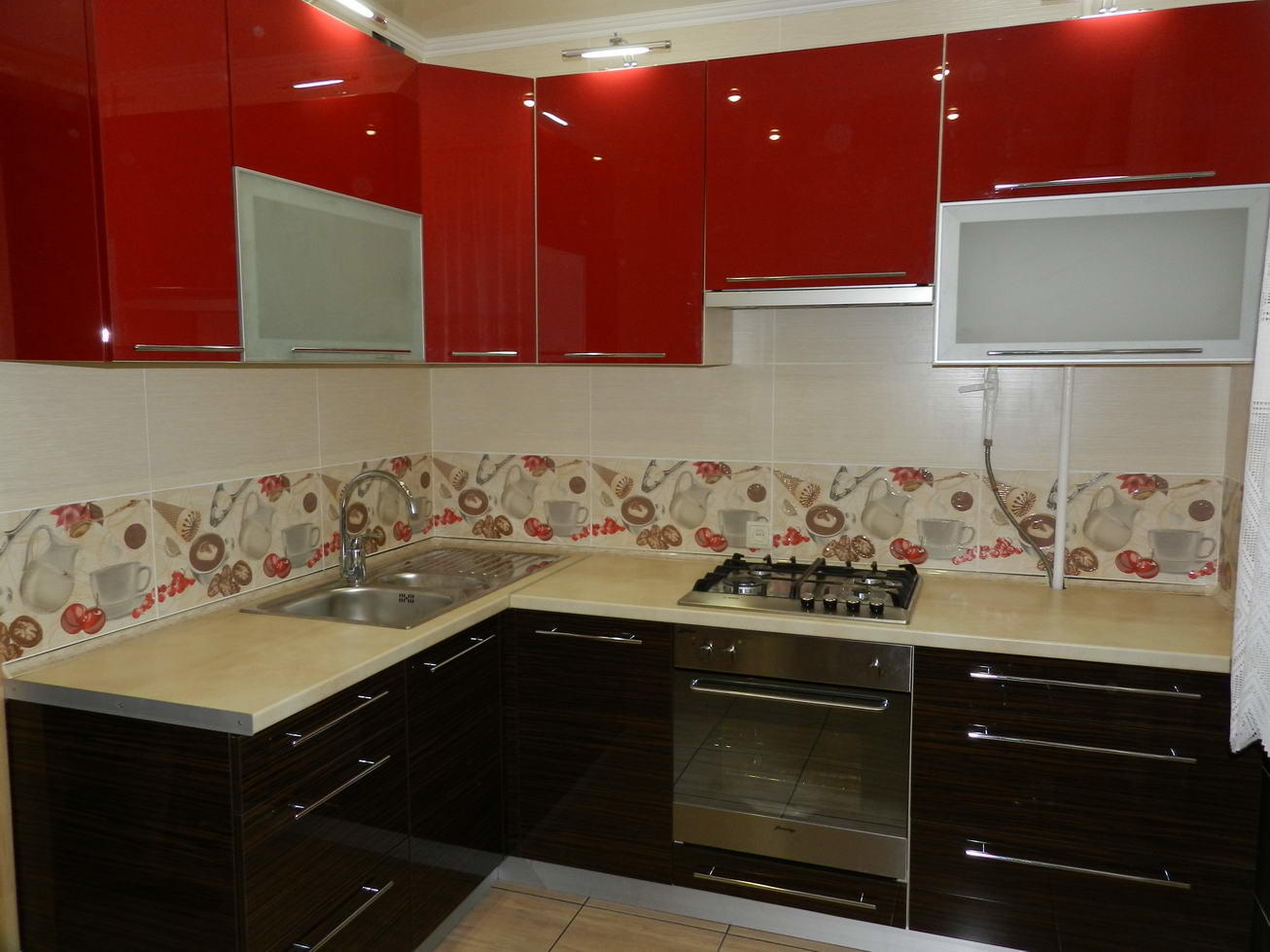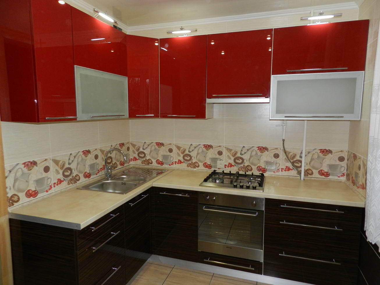 Стильная кухня Арабелла в стиле модерн станет ярким акцентом в интерьере частного дома или небольшой квартиры. Верхняя часть кухни из акрила, МДФ и стекла выполнена в ярко-красном цвете, а нижняя стилизована под натуральное дерево. Благодаря глянцевому покрытию кухня выглядит нарядно и празднично. Столешница, выполненная в светлых тонах, отличается прочностью, комплект оборудован блестязими металлическими ручками. Такая кухня понравится любителям модного дизайна, как в зарубежных домах. Купить кухонный комплект Арабелла можно в полной или частичной комплектации, доставка производится по всей России.