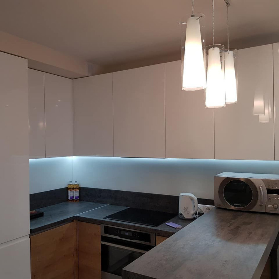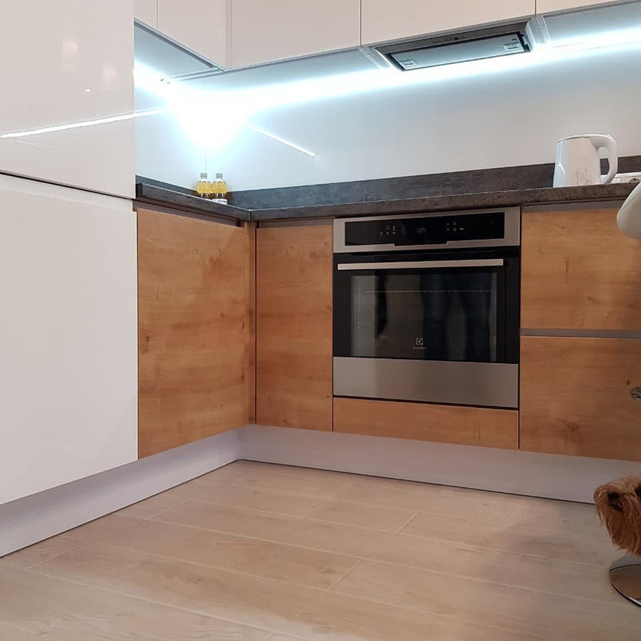 Кухню «Фатсия» отличает вместительность и качественно выстроенная эргономика, что позволит расположить внутри неё не только всю необходимую технику, но и наполнить теми мелочами, которые облегчат процесс приготовления пищи.