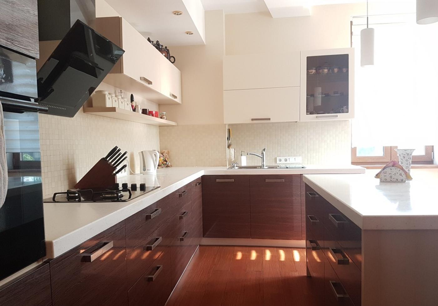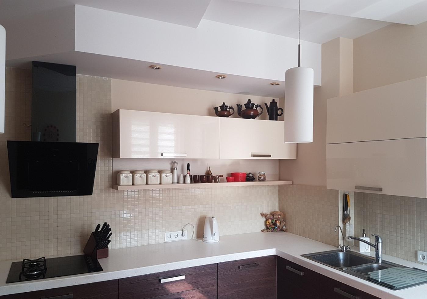 «Кирка» — современная дизайнерская кухня цвета кофе с молоком. Столешница из акрилового камня выглядит очень дорого и солидно, несмотря на относительно небольшую себестоимость. Кухня с такой столешницей отлично подойдёт тем, кто хочет видеть в оформлении интерьера чего-то более солидного, чем ДСП или МДФ, но не может себе позволить мебель из натурального камня. Гарнитур визуально делает кухню очень просторной и светлой. Вам будет очень приятно проводить там время, готовить и принимать гостей, если вы выберете кухню «Кирка»! Размер кухни вы можете выбрать, исходя из своих потребностей.