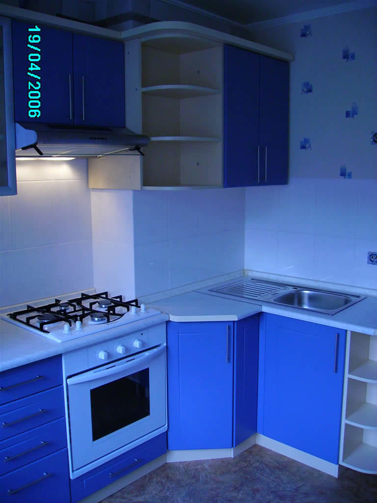 Сочетание мягкого синего и бежевого цветов создает приятный контраст, но при этом не бросается в глаза. По желанию клиента цвет корпуса и фасадов, а также фурнитура и размеры, могут быть изменены.