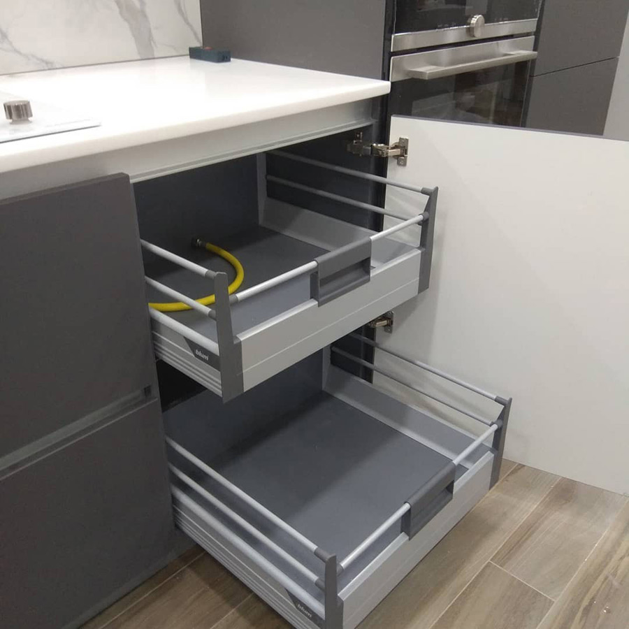 Минимализм фасадов уравновешивает умная фурнитура, скрытые системы хранения и подуманное внутренне наполнение шкафов. Модель с множеством функциональных модулей различных размеров, которые возможно выстроить в разных комбинациях, вписав её в любое помещение, вне зависимости от деталей планировки и площади.