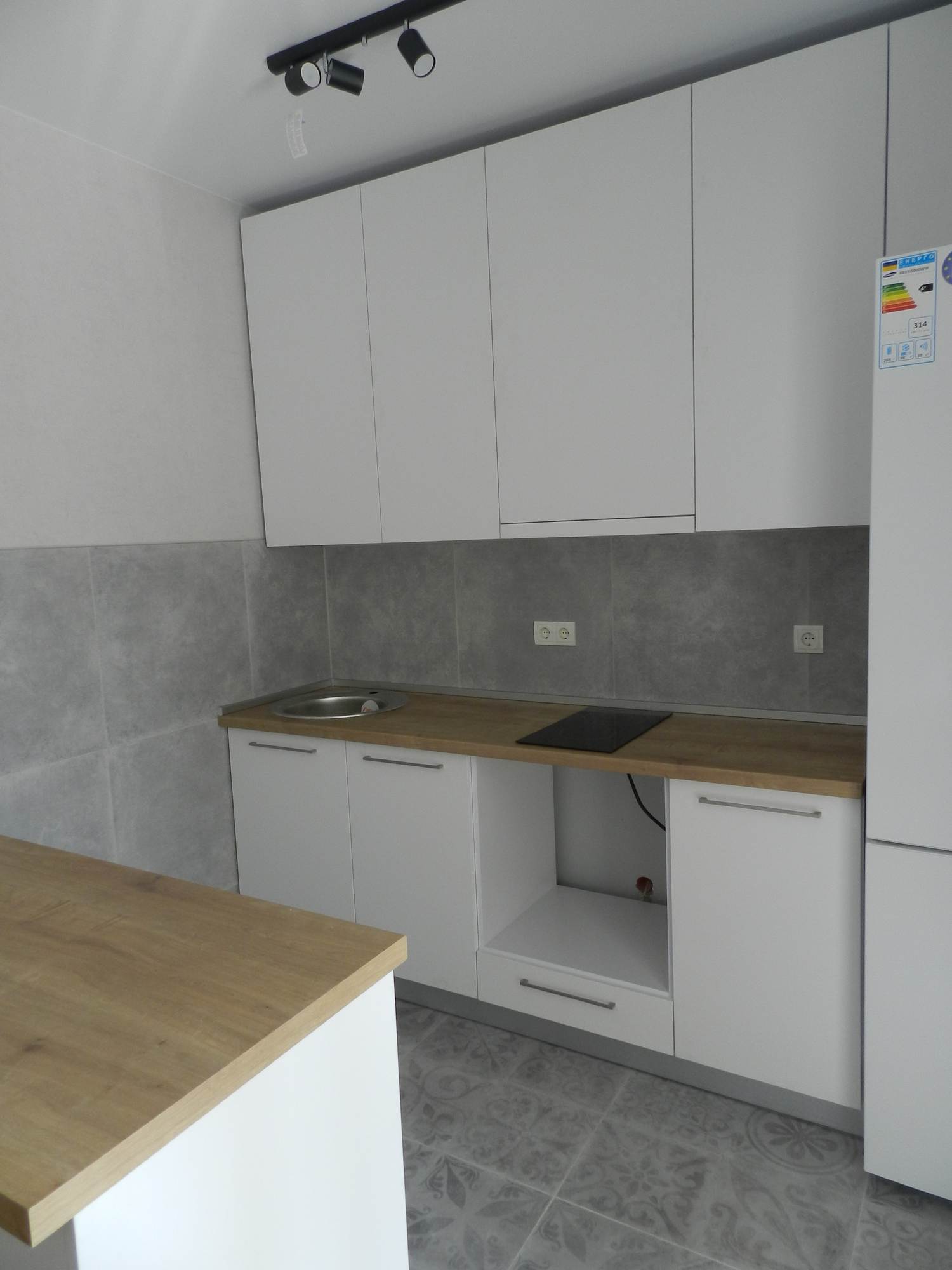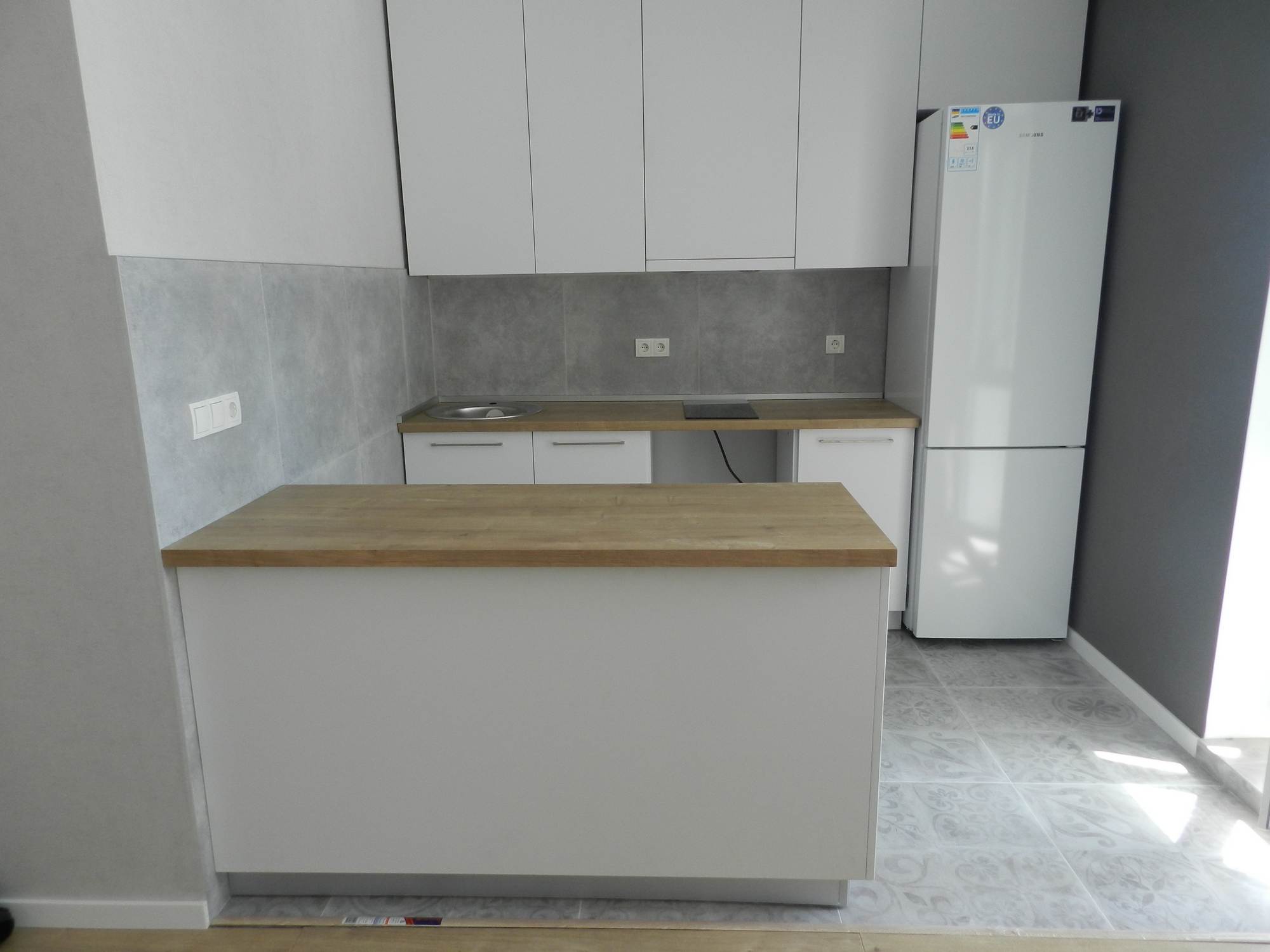 Современный кухонный гарнитур «Кристина» представляет собой скандинавский минимализм, прост и лаконичен. Идеально подойдёт для небольшой квартиры студии или обновит маленькую кухоньку малогабаритной хрущевки. Отдельно стоящий стол тумба как полостров отделит зону кухни от гостиной или столовой.