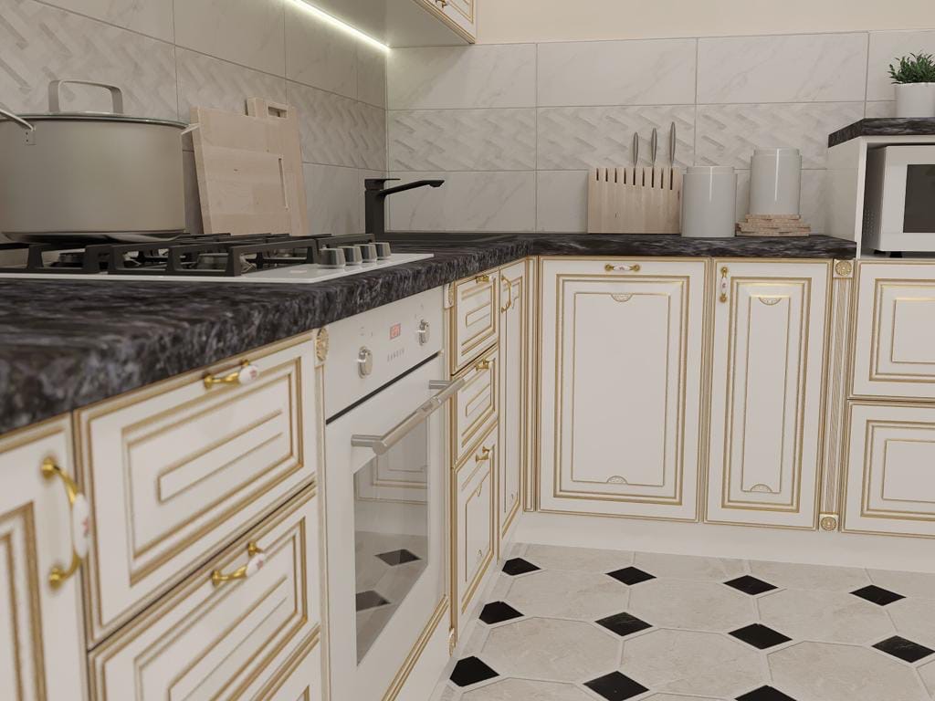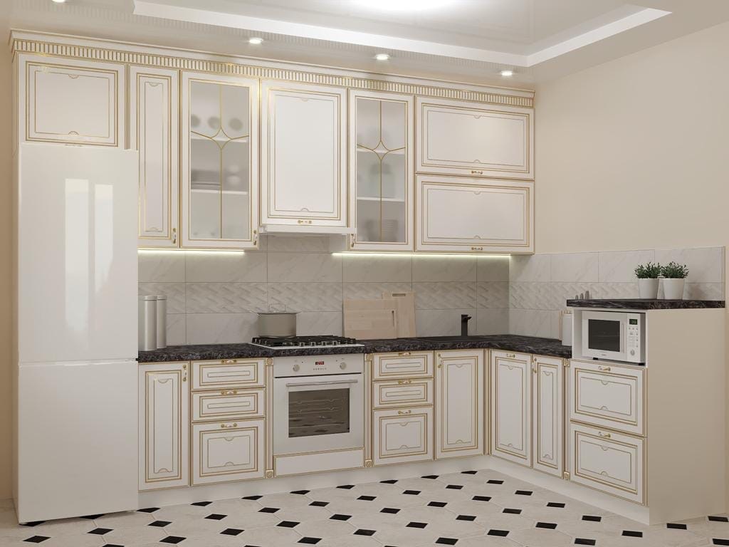 Кухня «Адель» является образцом классического стиля, который будет актуален во все времена. Украшенные золотом узоры на стенках и ящиках имеют четкие линии, при этом не перегружая общий лаконичный дизайн. Подсветка придаст оригинальности утонченному интерьеру. Спокойные светлые тона подчеркнут роскошь и аристократизм кухонного гарнитура. Он отлично впишется в интерьер как маленькой квартиры, так и огромного загородного дома. Большое количество практичных, вместительных ящиков позволит разместить всю необходимую кухонную утварь. Модель можно заказать в белом либо бежевом цвете.