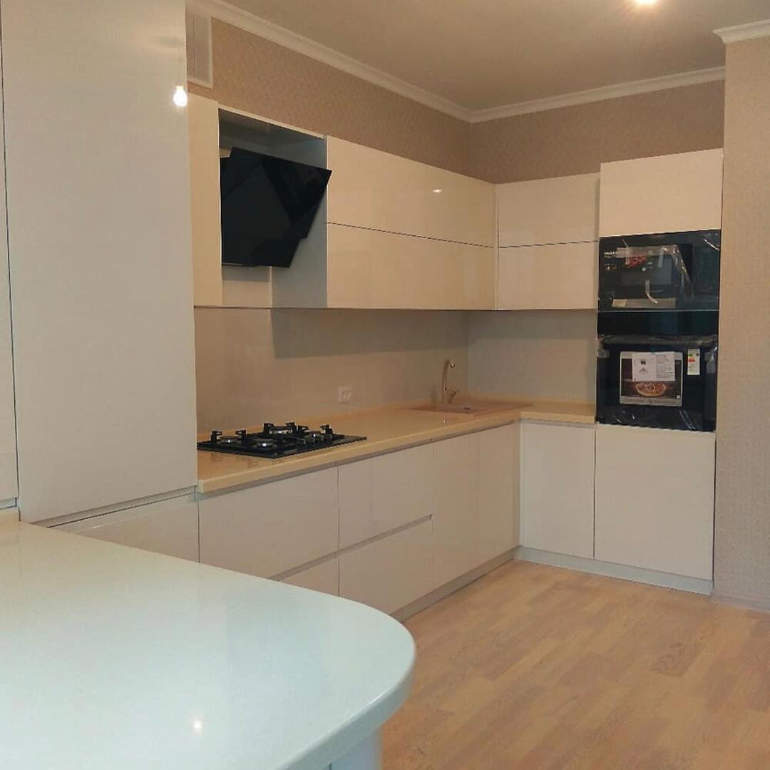 Кухонный гарнитур Оливер выполнен в современном минималистическом скандинавском стиле. Столешница изготовлена из кварца, корпус мебели — из ЛДСП. Вся поверхность фасада имеет акриловое покрытие бежевого цвета. Сбалансированное сочетание четких геометрических форм и отсутствие ручек на ящиках визуально облегчает общий вид кухни. Прямые линии мебели позволяют максимально использовать свободное пространство, а вместительные шкафы-пеналы — разместить все необходимые предметы для кухни. Гарнитур Оливер подойдет для ценителей простоты, минимализма и функциональности. Заказать данную модель можно в любом размере, цвете и комплектации.