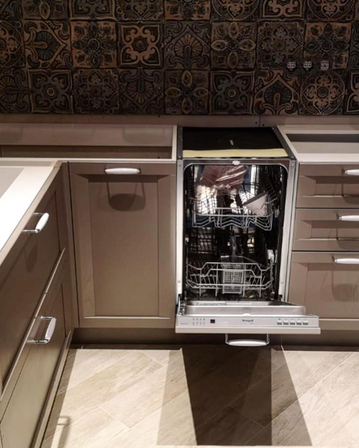 Кухня «Бугенвилия» — это удачная адаптация классики под современность и отличный выбор для ценителей британской эстетики. Шоколадный цвет гарнитура и фасады из шпона и стекла идеально подходит для кухни в английском стиле. Классика хороша тем, что никогда не выйдет из моды, поэтому владельцам этой кухни можно не переживать за то, что через много лет их интерьер потеряет свою актуальность. Этот стиль делает кухню более подходящей для просторных помещений, несмотря на угловую форму. Благодаря элегантному оформлению гарнитура «Бугенвилия» ваша кухня станет самой любимой гостями комнатой в доме!