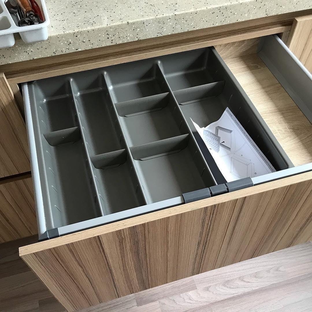 Внутреннее пространство шкафчиков продумано так, чтобы даже в небольшом помещении обеспечить максимально много места для хранения. Ящики, полки и корзины уместят в себе всю вашу кухонную утварь и надежно спрячут ее от посторонних глаз.