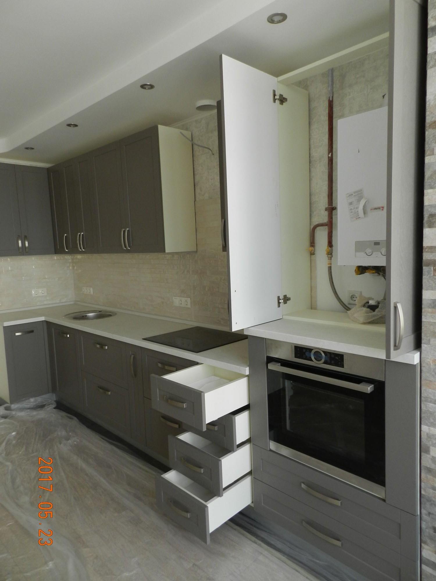 Удобное расположение систем хранения и экономия пространства – основные достоинства углового комплекта. Выдвижные ящики с доводчиками – дополнительные места расположения бытовых приборов и других вещей. Мойка, размещенная в углу, позволяет рационально использовать пространство и задействовать рабочую зону.