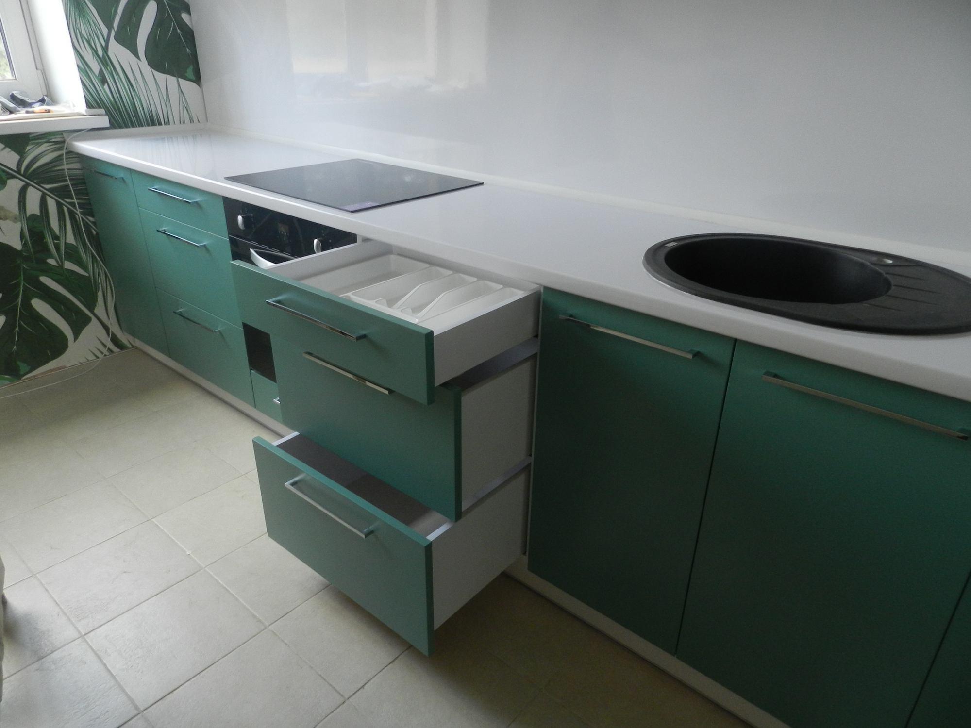 Кухня «Лавли»— воплощение элегантной грации в минималистическом стиле. Пастельные изумрудно-мятные тона нижнего яруса оптимально уравновешивают белые фасады верха. В меру яркая и оригинальная модель создаёт ощущение спокойствия и стабильности. Благодаря компактности и тёплой цветовой гамме гарнитур станет уместным решением для маленьких комнат и помещений, которые плохо освещены солнцем. Модель продуманная и функциональная, с прямыми линиями и гладкими фактурами. За счёт отсутствия декора, выступающих частей и оставленных на виду мелочей, данную модель кухни легко убирать — в ней постоянно будет царить порядок.