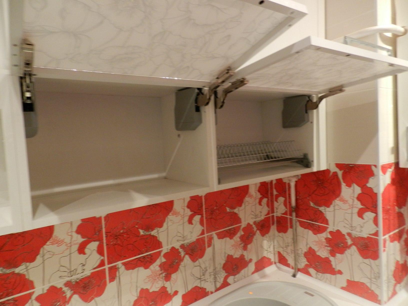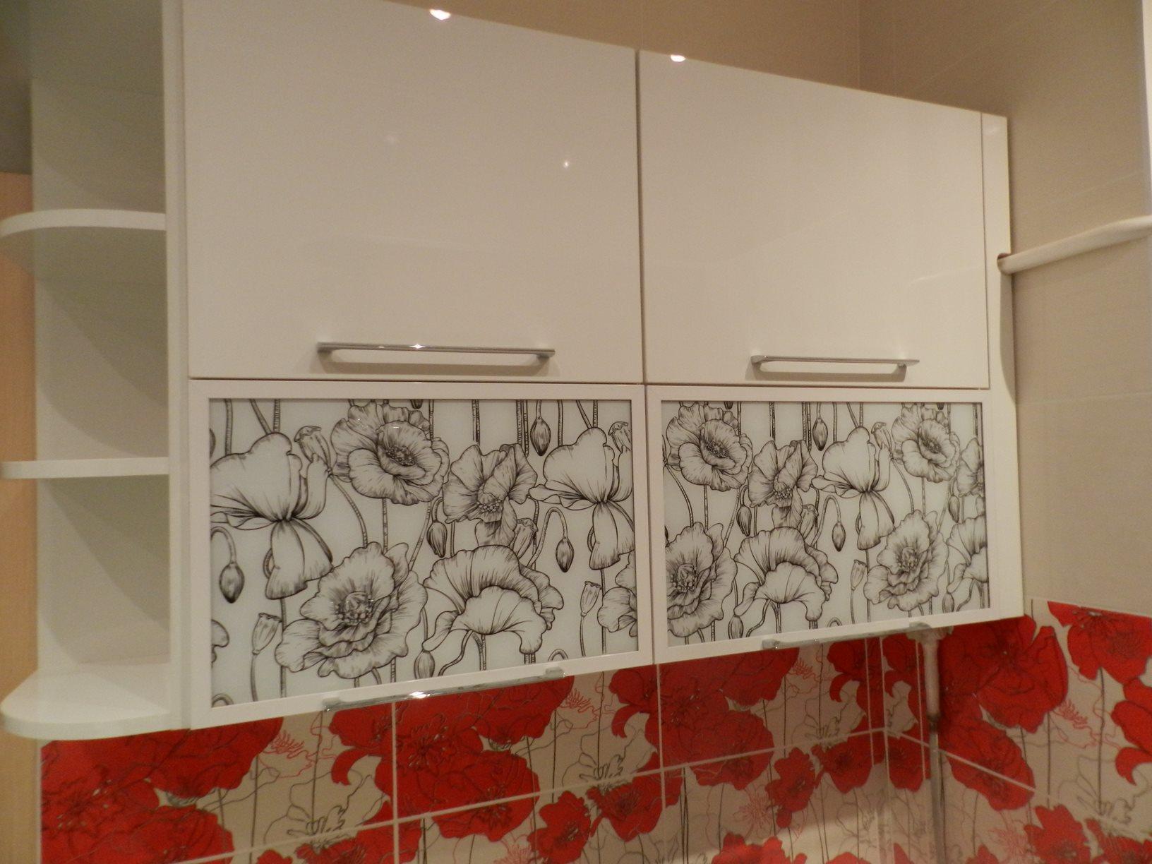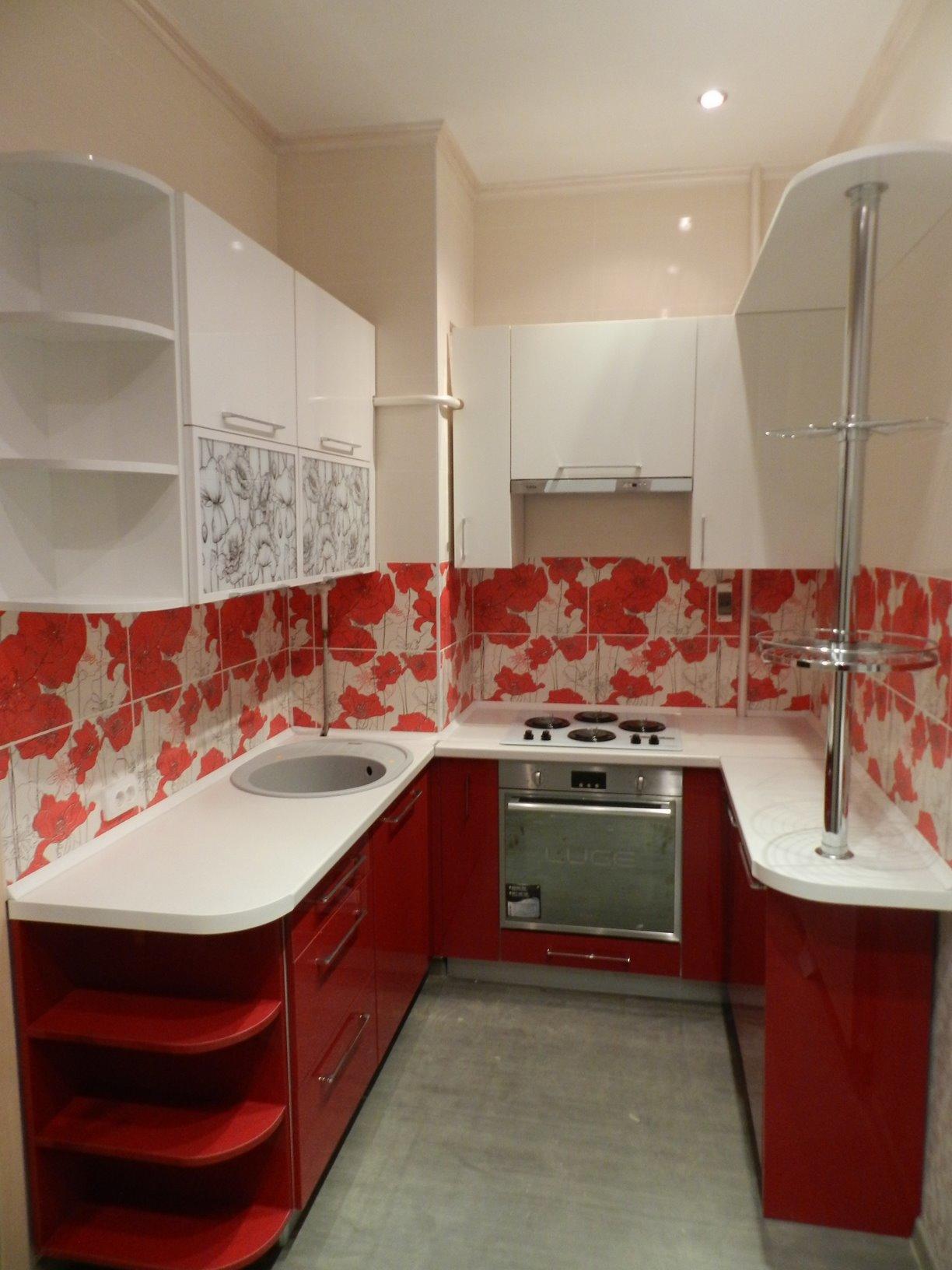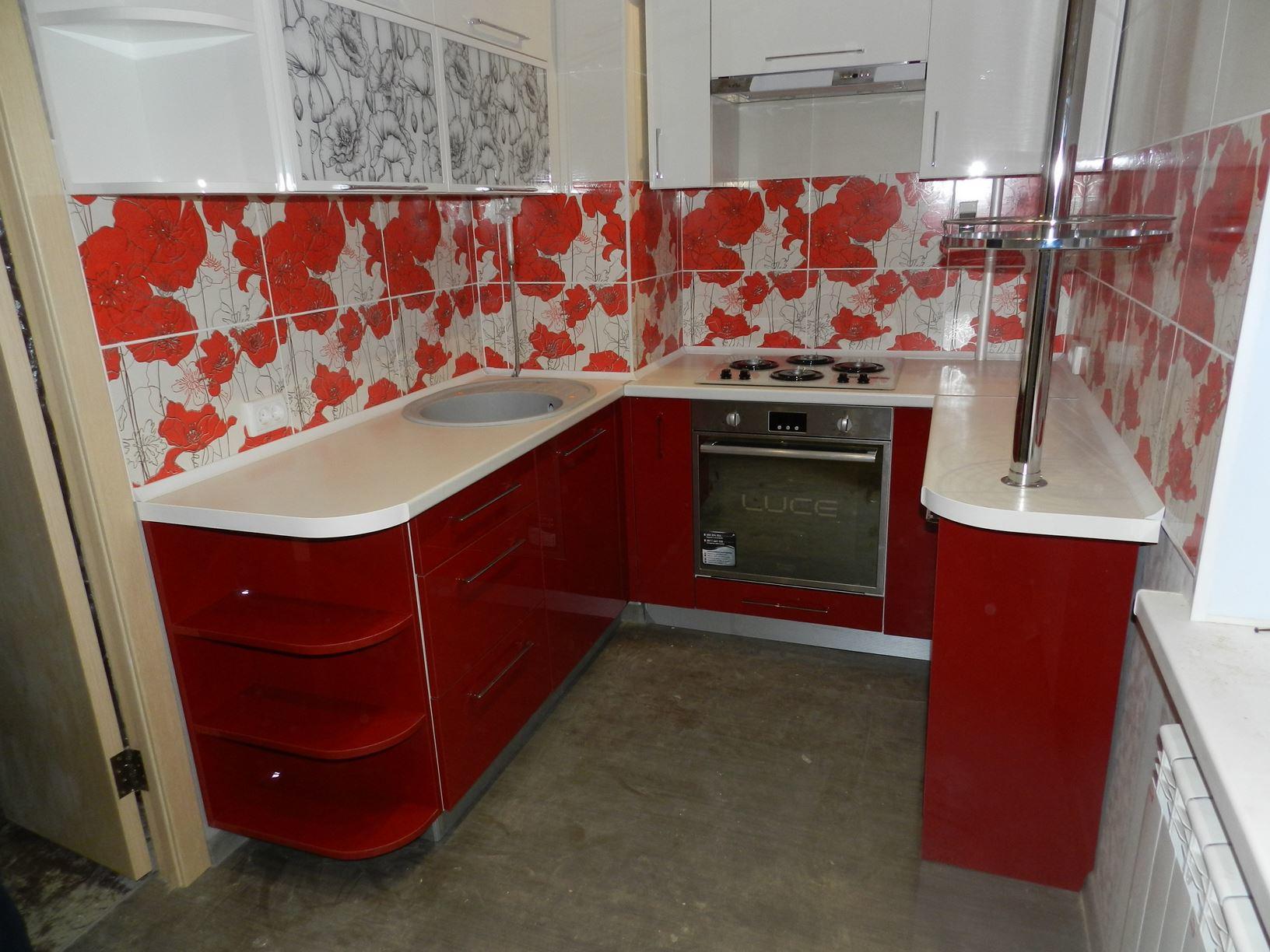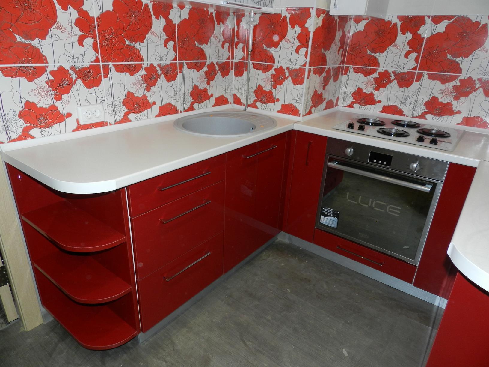 Цветовая гамма гарнитура яркая и красочная, но спокойная и легкая: красные маки отлично смотрятся на белом фоне, а серые оттенки облегчают фон, давая глазу отдохнуть.