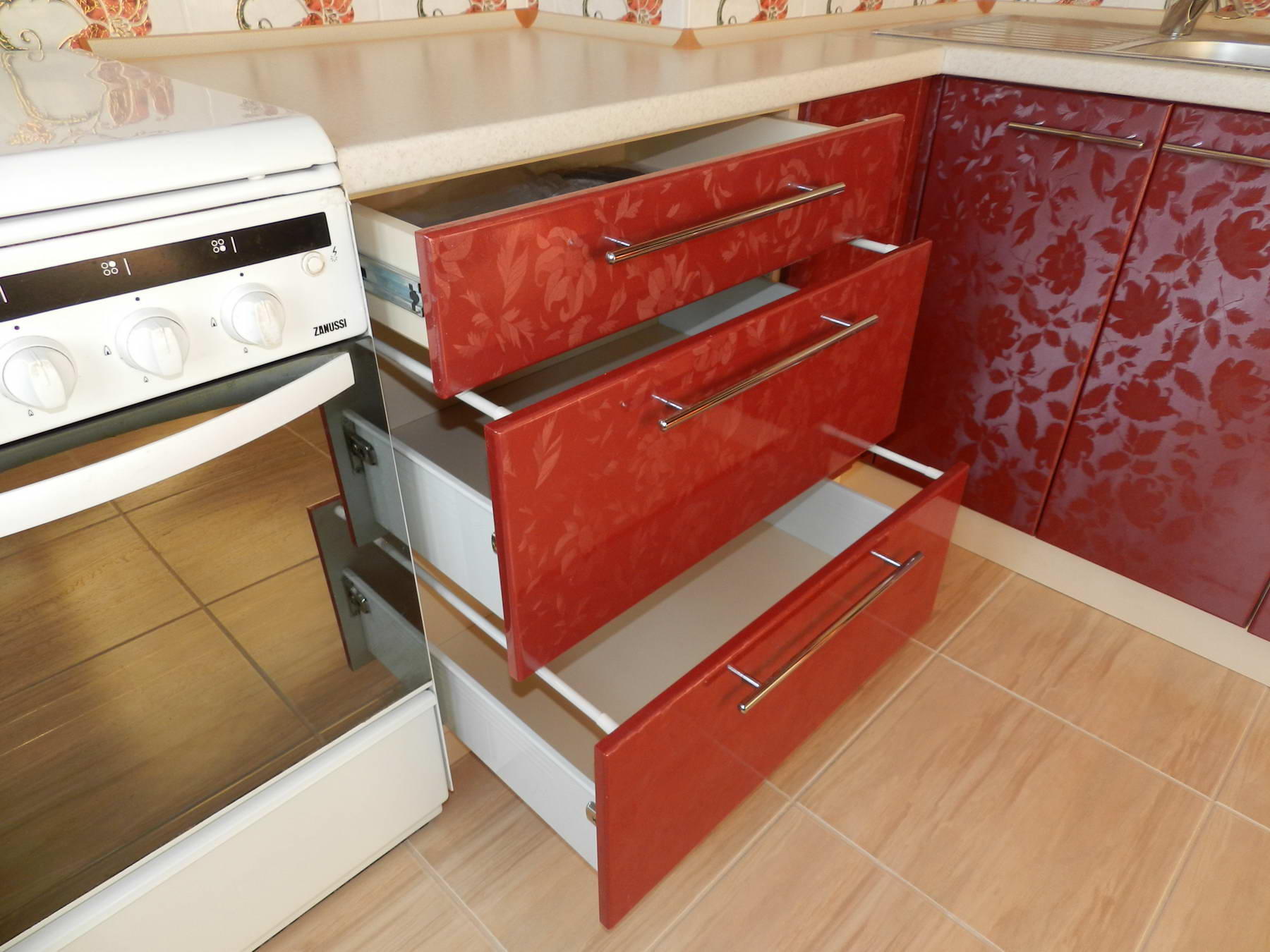 Угловой кухонный гарнитур «Рузанна» подойдёт как для просторной типичной кухни, так и для квартиры-студии. Фасады изготовлены из листов МДФ и покрыты плёнкой ПВХ с очень оригинальной тиснённой поверхностью и цветочным рисунком, который поможет создать в помещении уют и спокойствие.