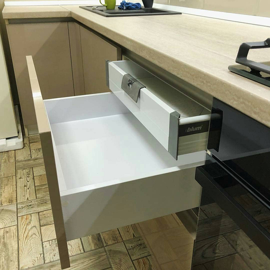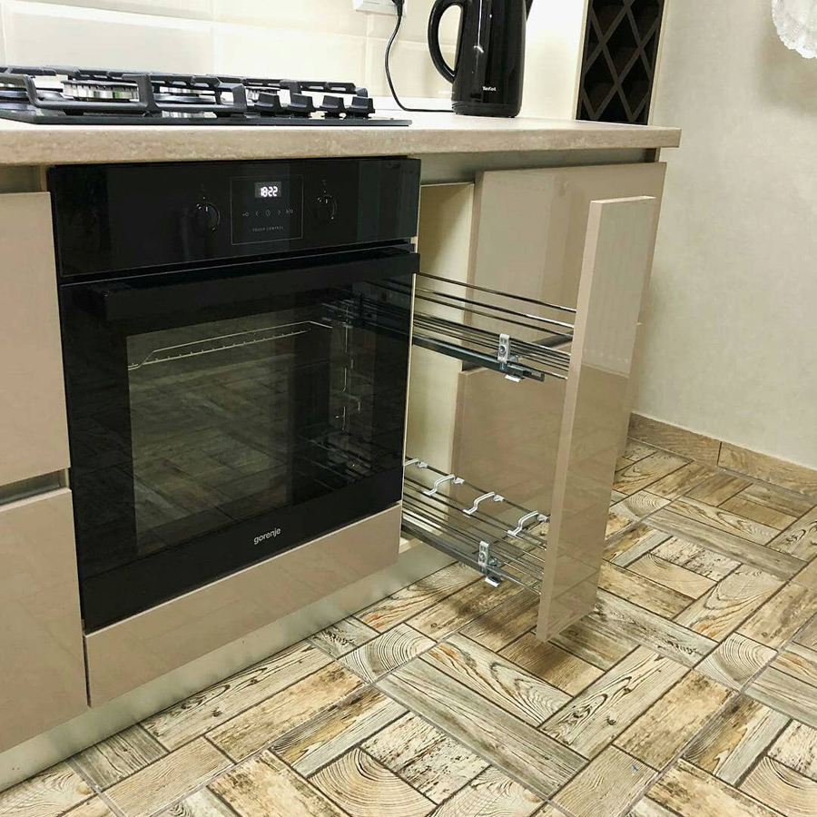 Гарнитур впишется как в небольшое помещение, так и в более просторную кухню или в загородный дом, так как размер и планировку можно подогнать под индивидуальные требования и предпочтения заказчика.