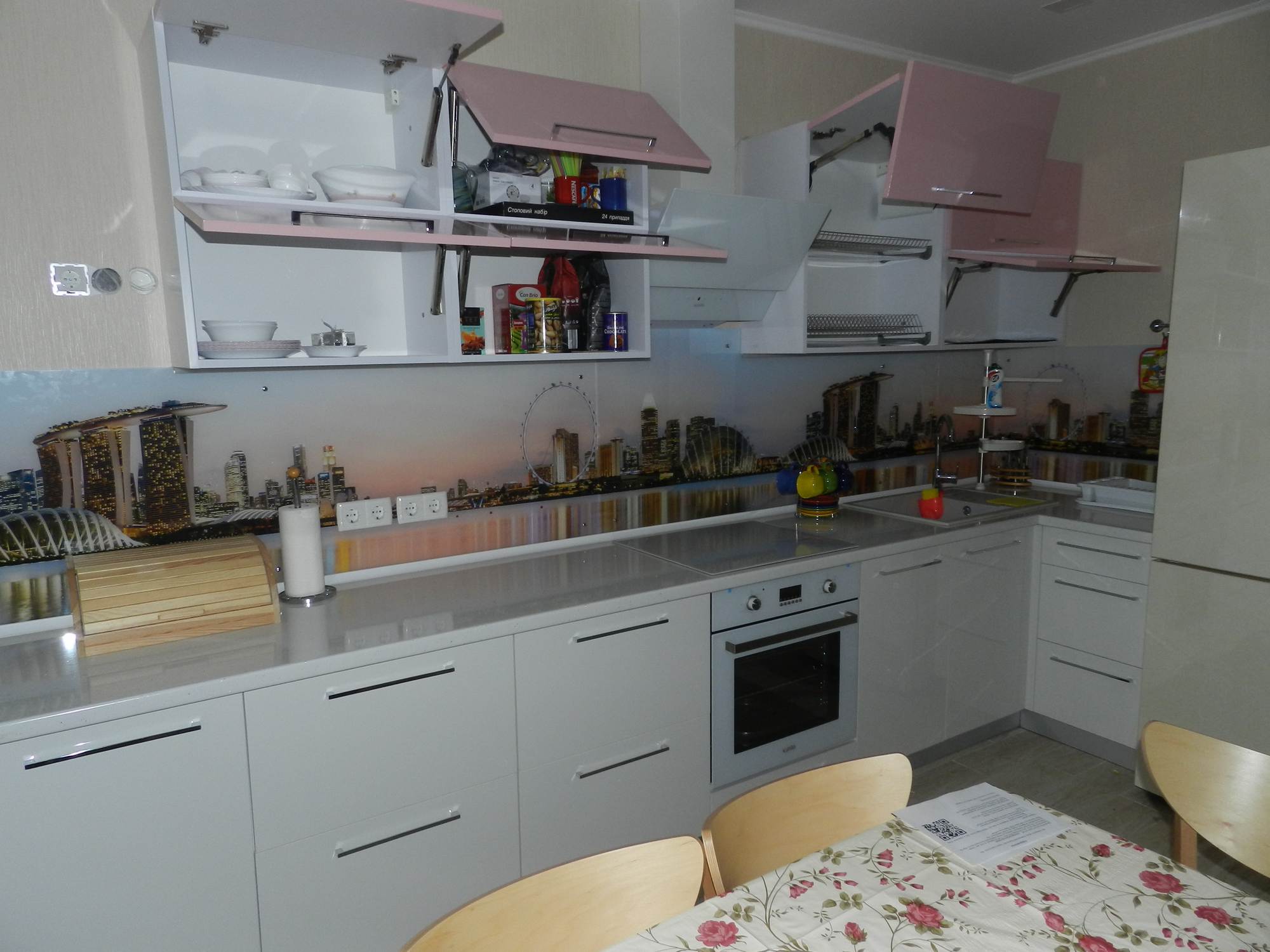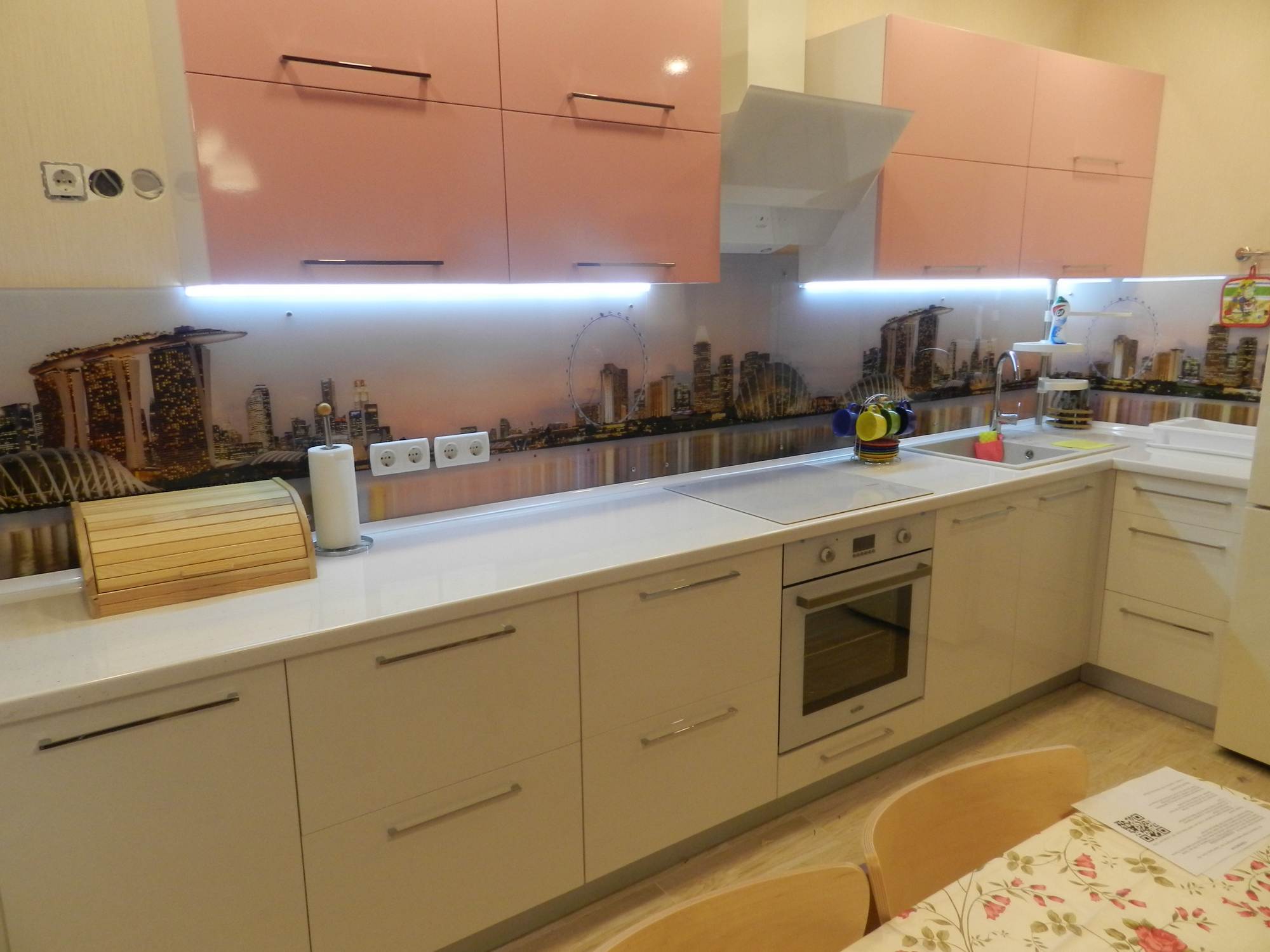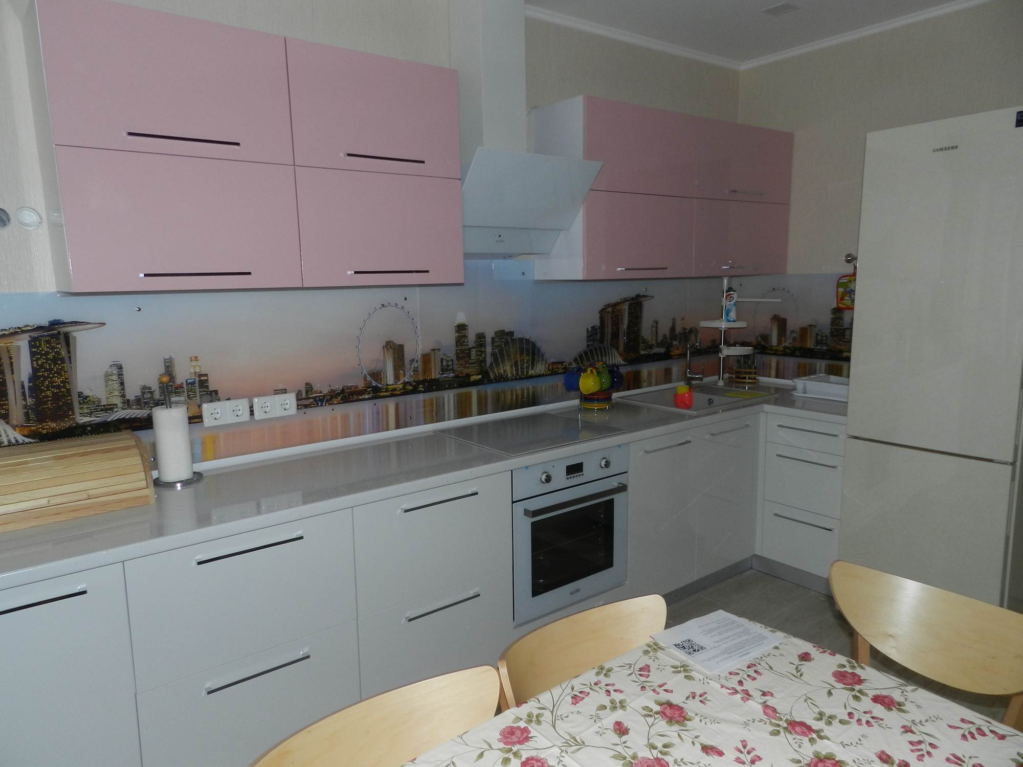 Угловая кухня «Симона» прекрасное решение при покупке кухонного гарнитура. Выполненная в нежных тонах белого и фуксии, она создаст уют и ощущение домашнего тепла. Улучшат настроение и наполнят нежностью сердца своих владельцев.
