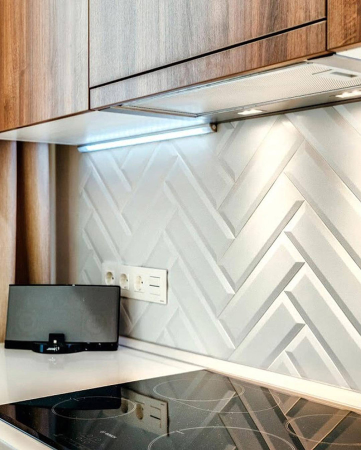 Лучшее дизайнерское решение современной кухни скандинавский стиль, который представлен в кухонном гарнитуре «Камила». Подойдёт как для просторной квартиры, так и для частного дома.