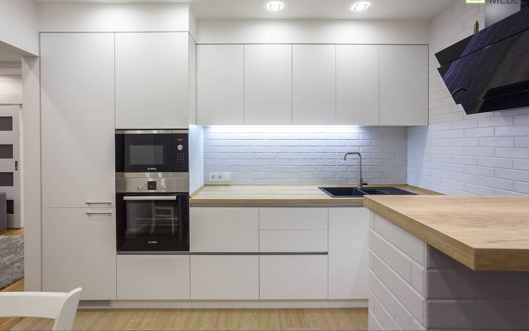 Кухня «Мару» угловая, встроенная в нишу «под потолок», выполнена в скандинавском стиле с плоскими белыми фасадами и ненавязчивыми декоративными элементами. Для повышения комфортности гарнитур оснащен удобным барным столиком, который прекрасно впишется в интерьер любой модной кухни. Корпус и столешница модели изготовлены из листа ЛДСП, фасады отделаны листовым пластиком с высокими показателями устойчивости к появлению царапин, водоустойчивости и твёрдости. При изготовлении используются современные материалы и технологии, благодаря чему кухня выглядит актуально и обладает высоким уровнем прочности и долговечности.