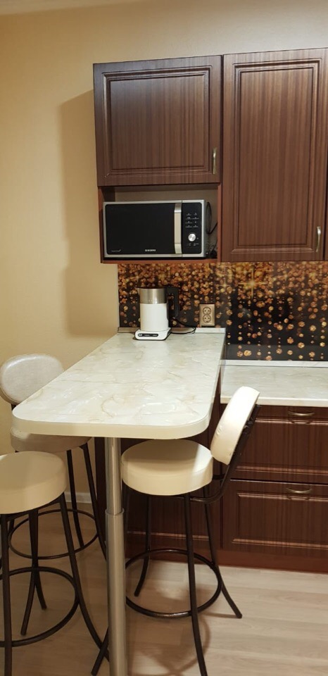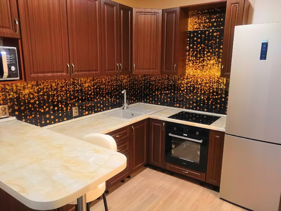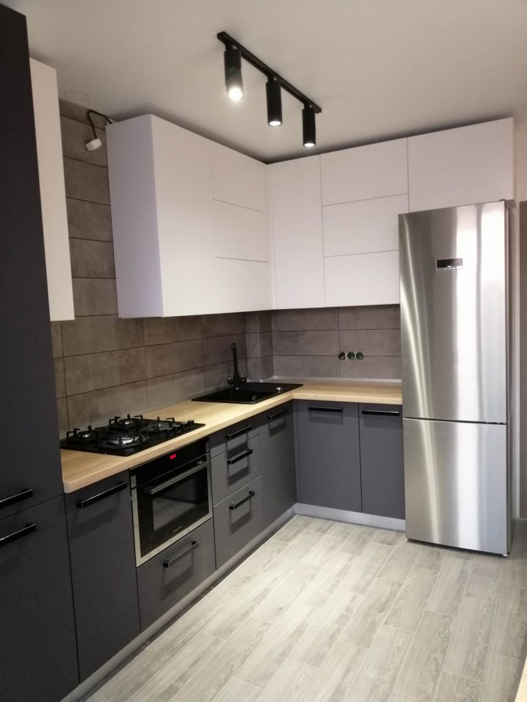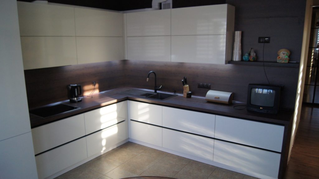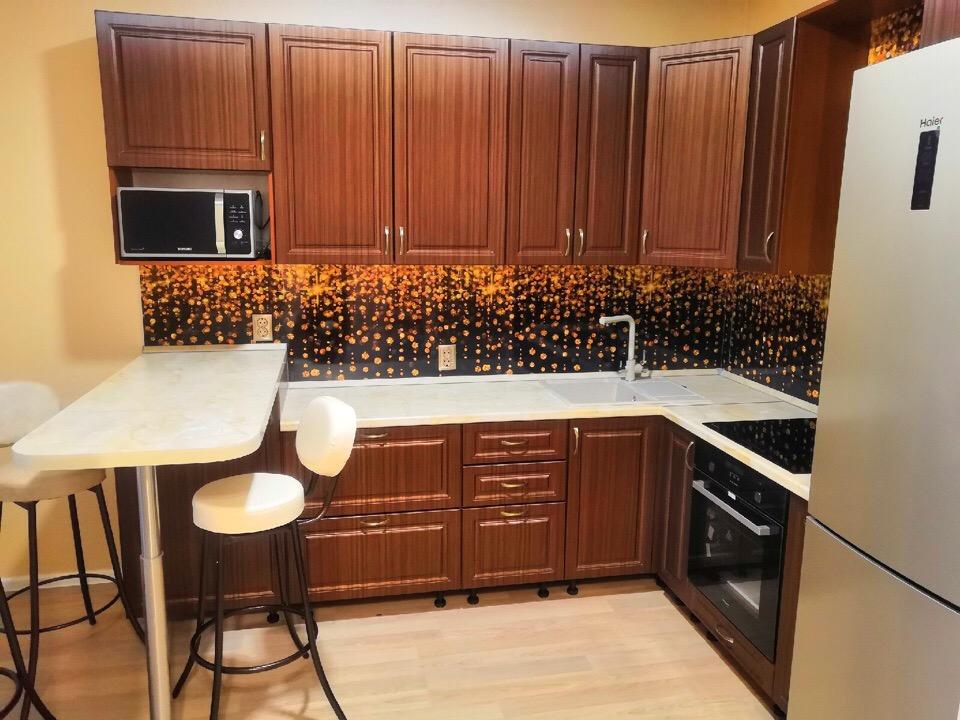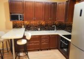 Исходя из размеров, подобрали прекрасный вариант кухни из лдсп, верх светлый, а низ темного цвета, лдсп «под дерево». Предложили очень практичный вариант, с обилием шкафчиков и ящиков для посуды, приправ, бутылок и СВЧ-печки. Ручки очень симпатичные. Сотрудничать с этой компанией – сплошное удовольствие. Кухня доставлена в срок — через месяц и никаких тебе задержек. Оплата за мебель была произведена после ее детального изучения. Мебель была аккуратно запакована в коробки, инструкция прилагалась. Мебельные принадлежности пришла без брака и в полном комплекте. Собрать смогли ее самостоятельно, внешне смотрится очень дорого, хоть и заплатила за такое качество немного.